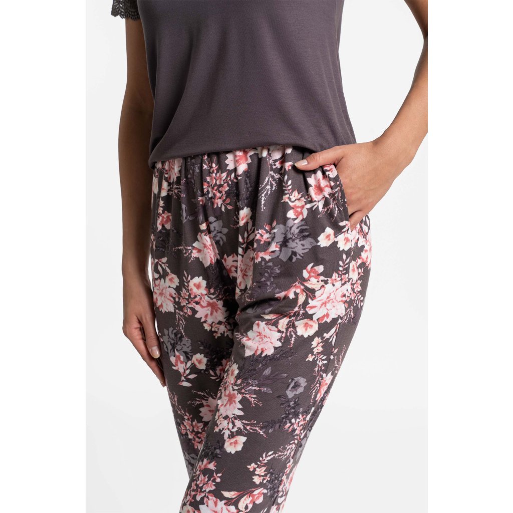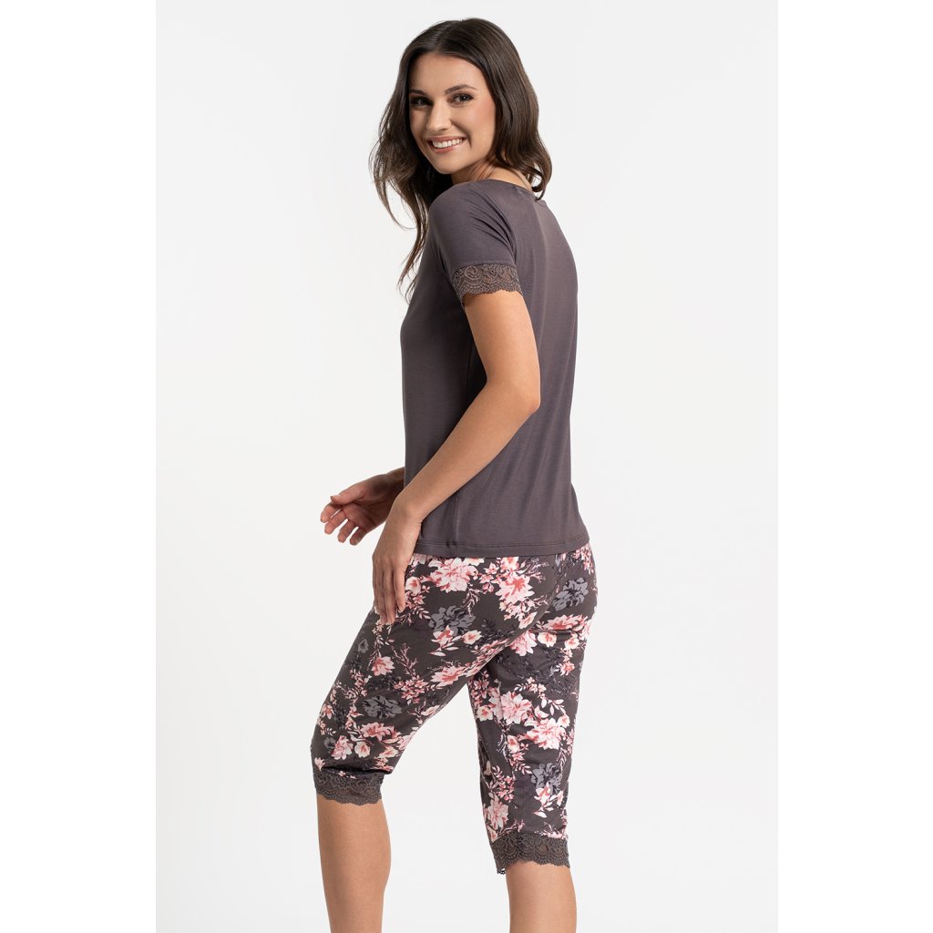 Dámské pyžamo Moraj PDD4900-028 je vyrobeno z měkkého viskózového úpletu s přídavkem elastanu. Vrchní díl s výstřihem do V a krátkými rukávy umožňuje volnost pohybu, zatímco tříčtvrteční kalhoty s kapsami jsou praktické pro každodenní nošení. Rovný střih a hladké zakončení zvyšují pohodlí. Tato souprava je ideální pro celoroční spaní a odpočinek doma. Složení: 95 % viskóza, 5 % elastan.Doplňkové parametry