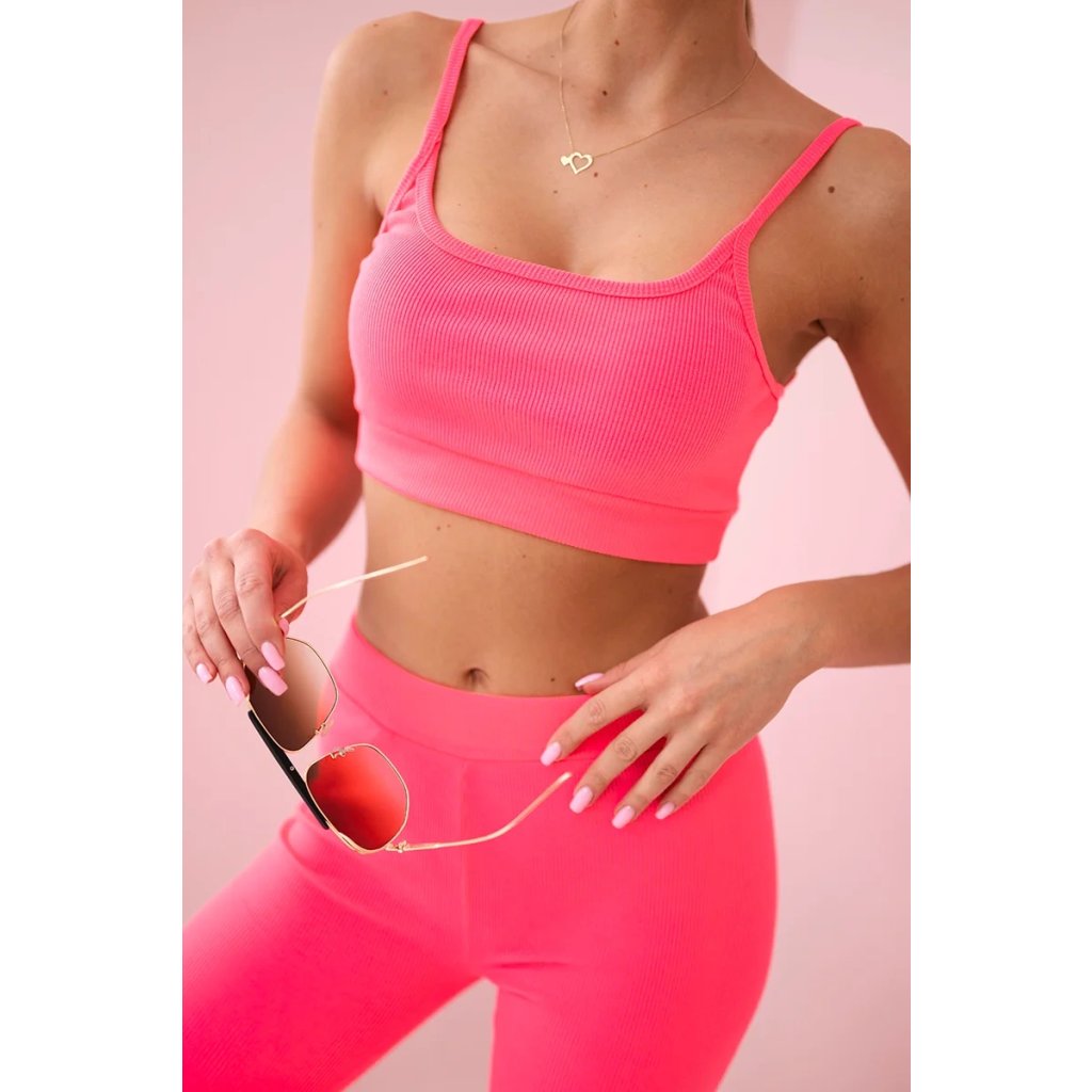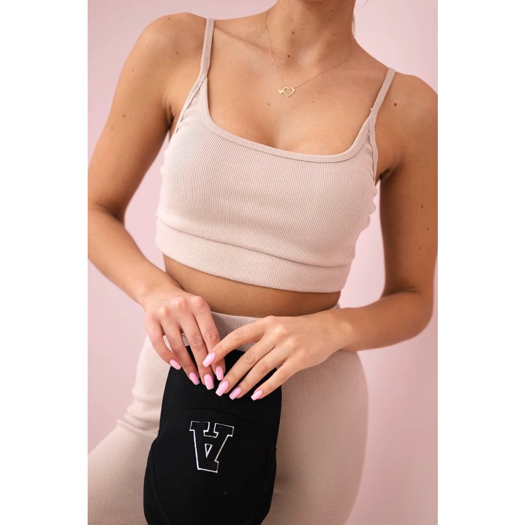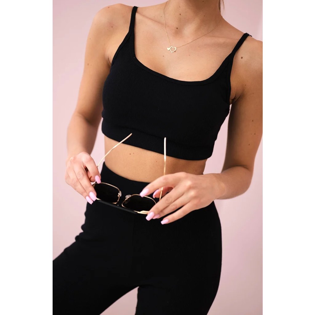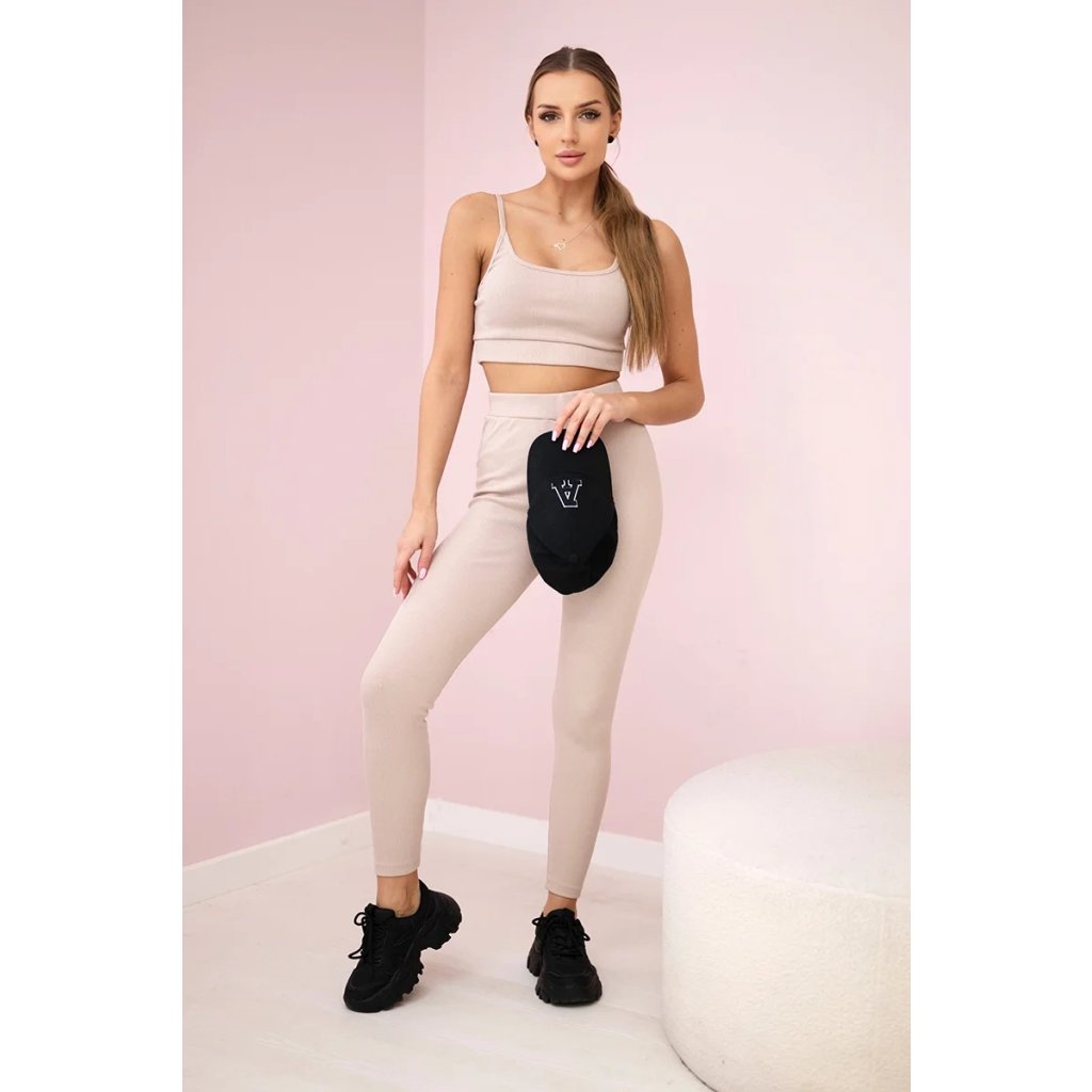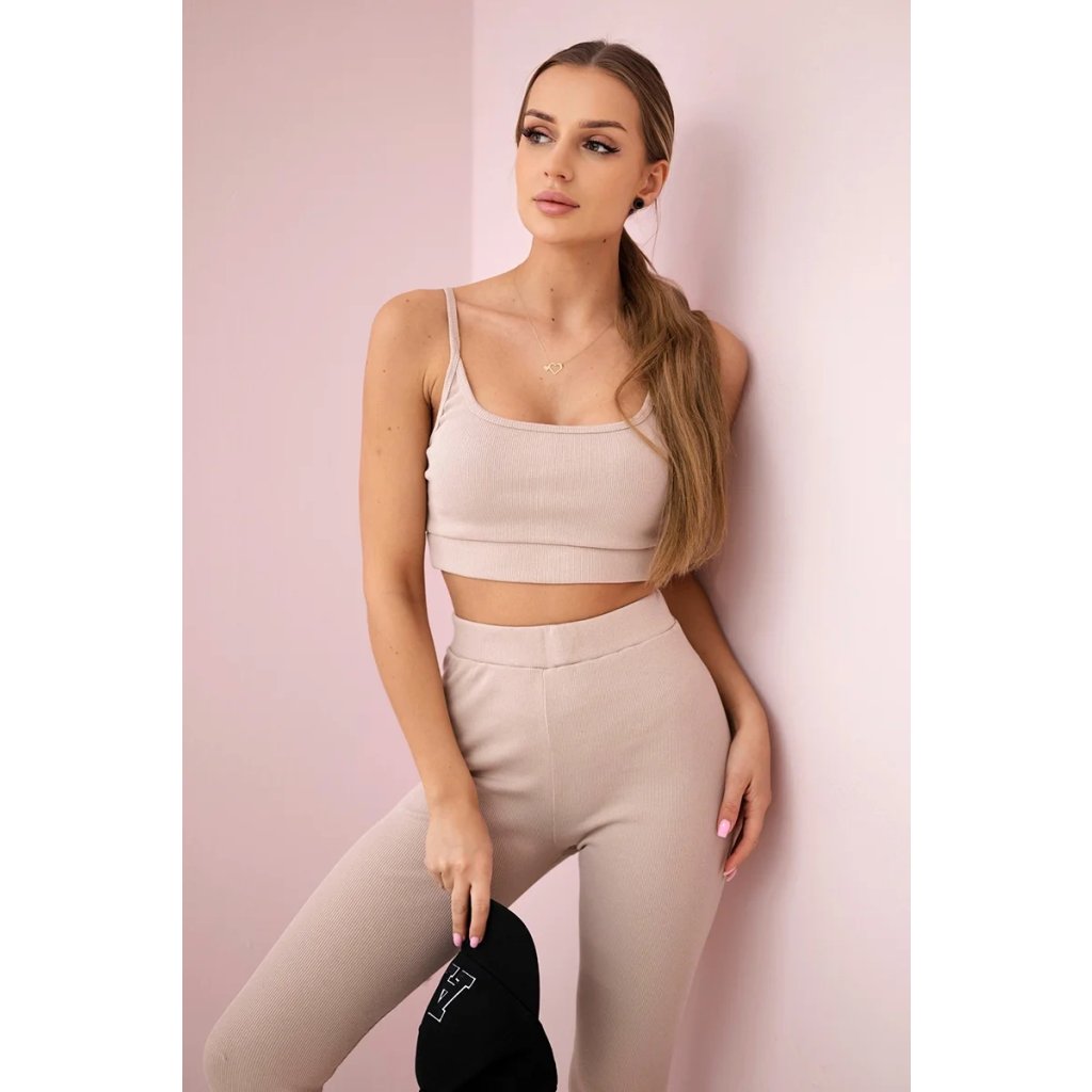 Představujeme vám sadu topu a legín. Top bez ramínek. Top a legíny z žebrovaného materiálu. Sada je vyrobena z vysoce kvalitního materiálu. Velikost je univerzální a padne ženám ve velikosti S nebo M.