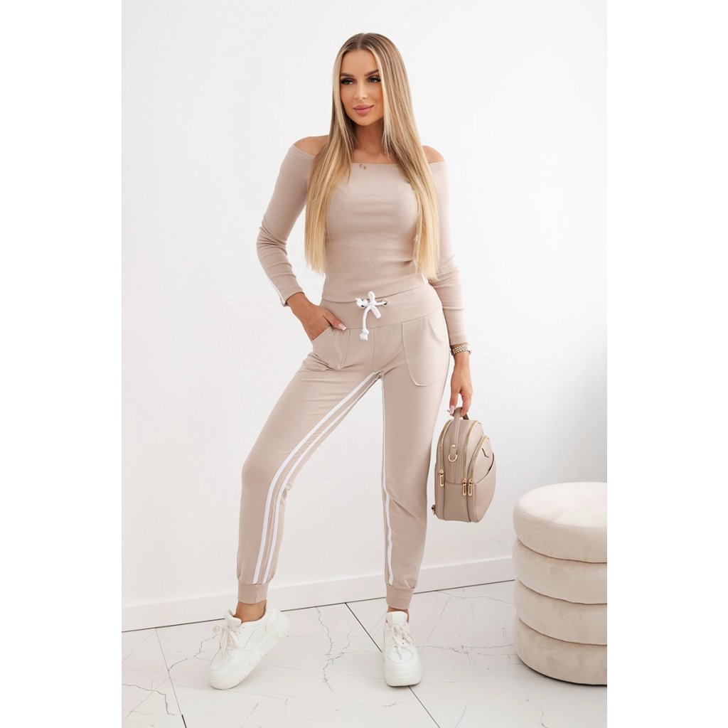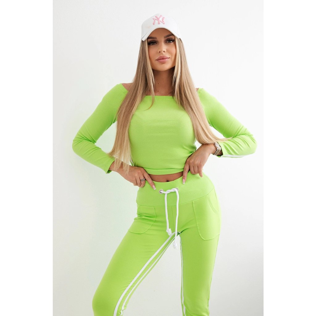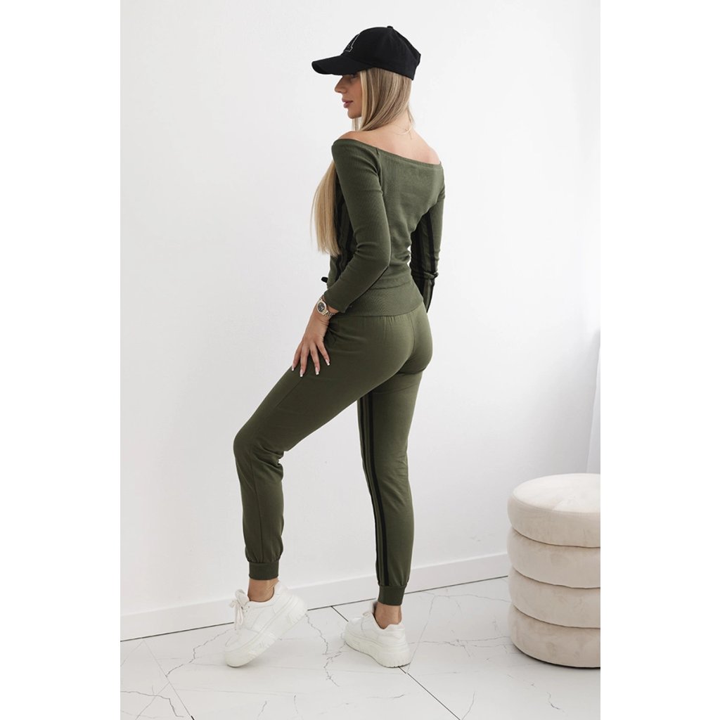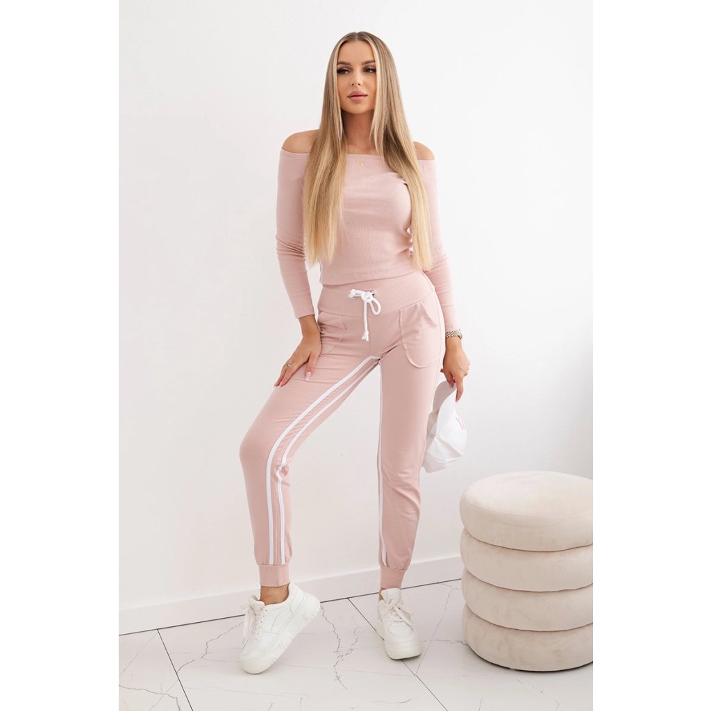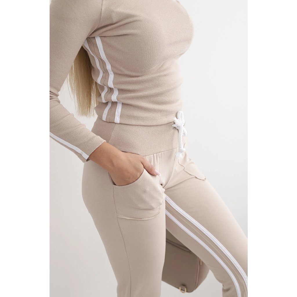 Představujeme vám sadu mikiny a kalhot. Souprava má kalhoty s vysokým pasem. Halenka z žebrované tkaniny. Dvojité lemování na kalhotách a halence. Kalhoty mají kapsy. Sada je vyrobena z vysoce kvalitního materiálu. Velikost je univerzální a vyhovuje dámám, které nosí velikost S, M nebo L.