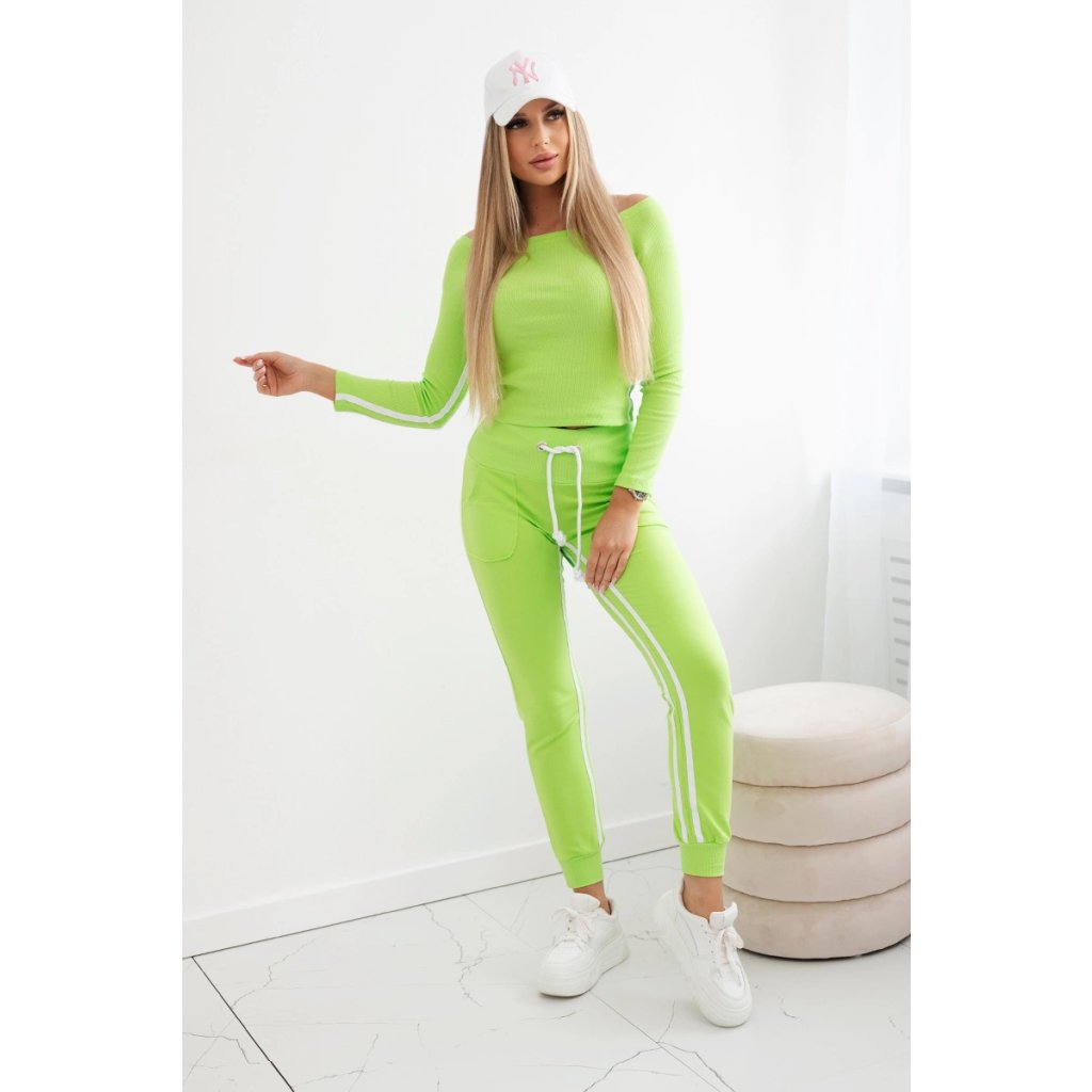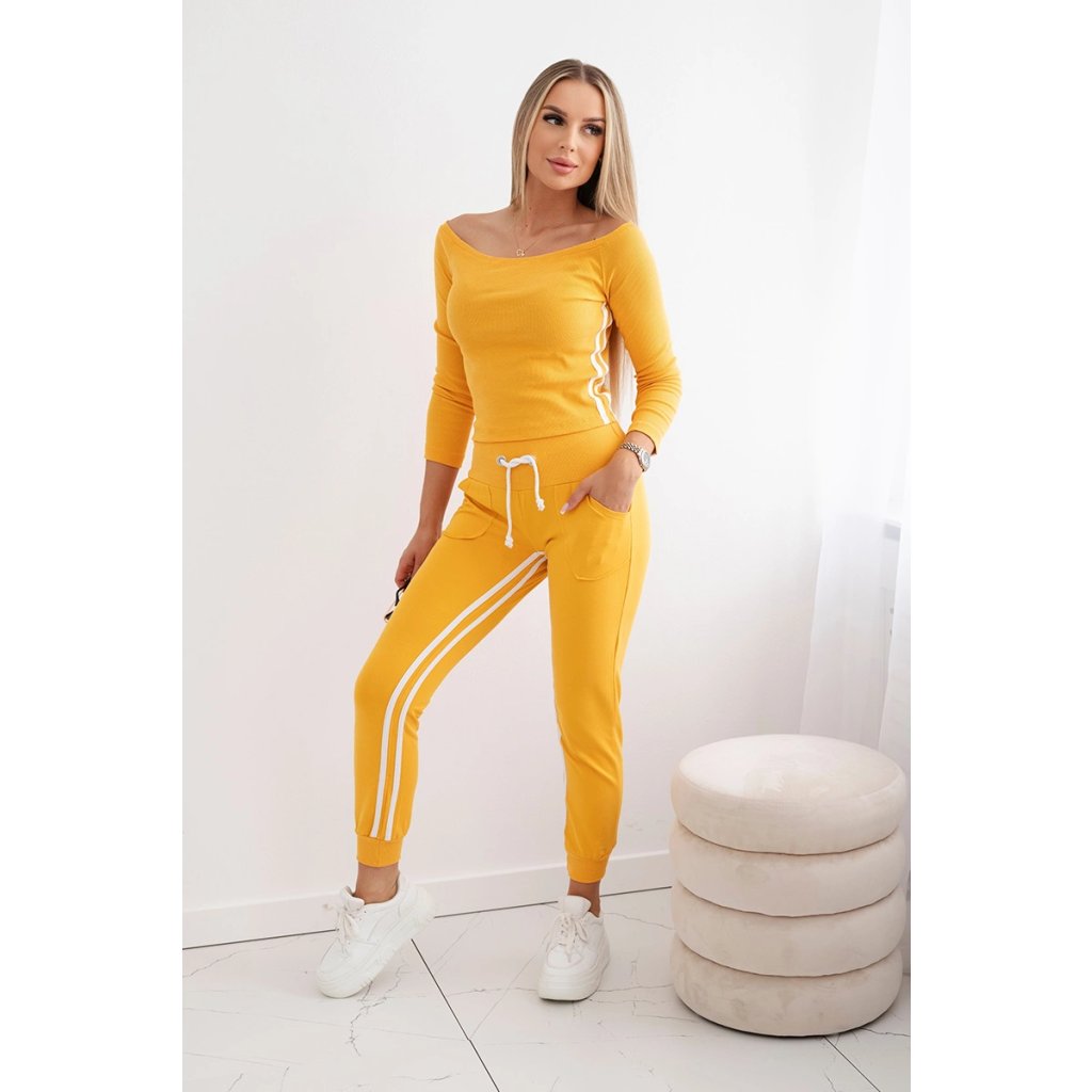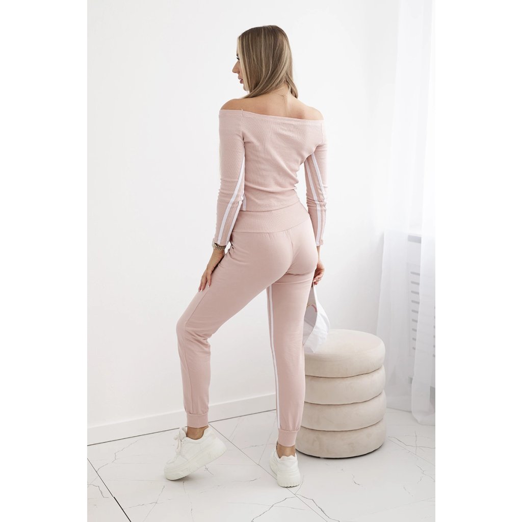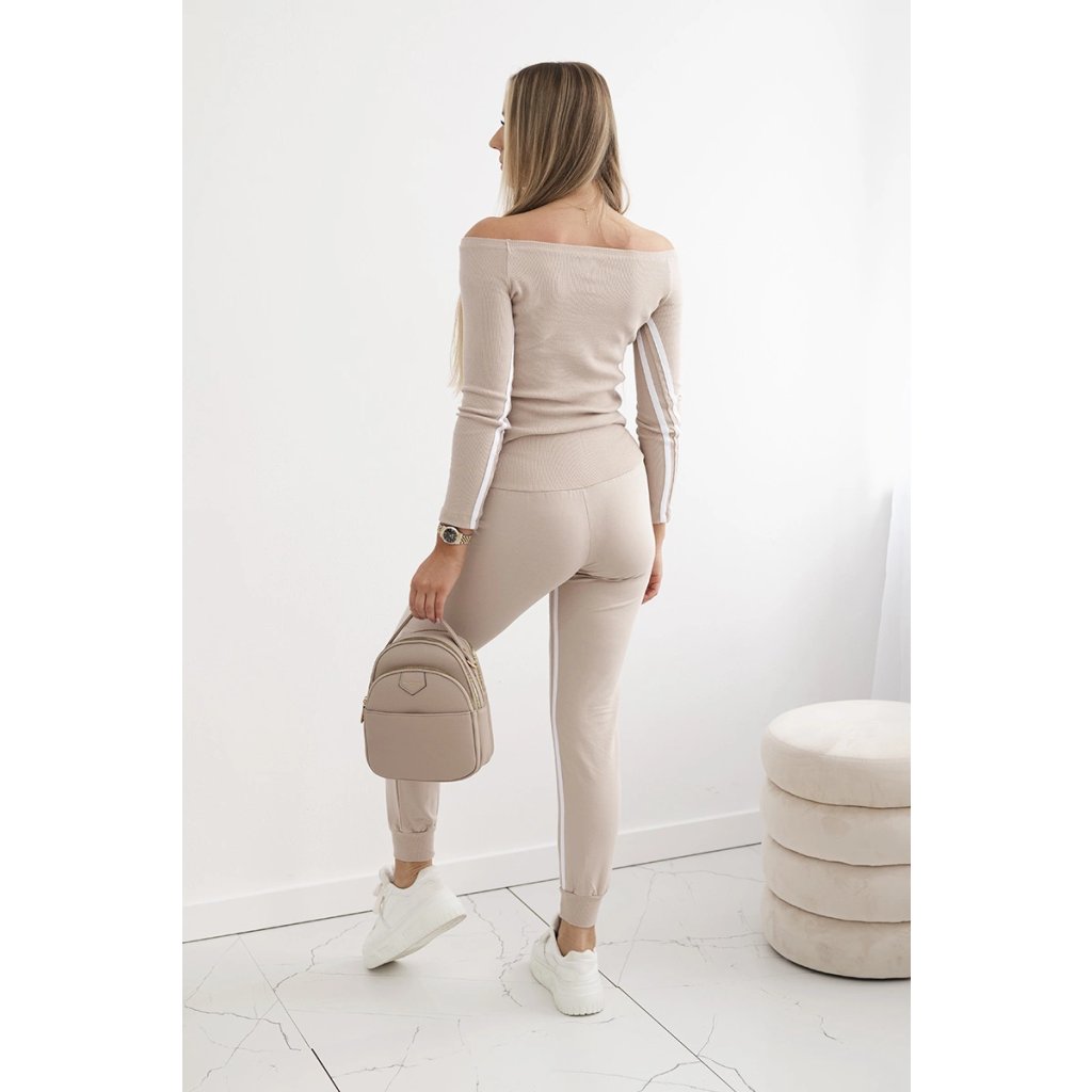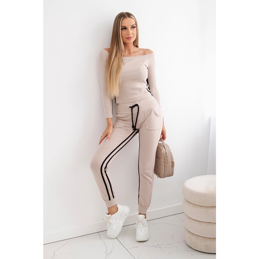 Představujeme vám sadu mikiny a kalhot. Souprava má kalhoty s vysokým pasem. Halenka z žebrované tkaniny. Dvojité lemování na kalhotách a halence. Kalhoty mají kapsy. Sada je vyrobena z vysoce kvalitního materiálu. Velikost je univerzální a vyhovuje dámám, které nosí velikost S, M nebo L.