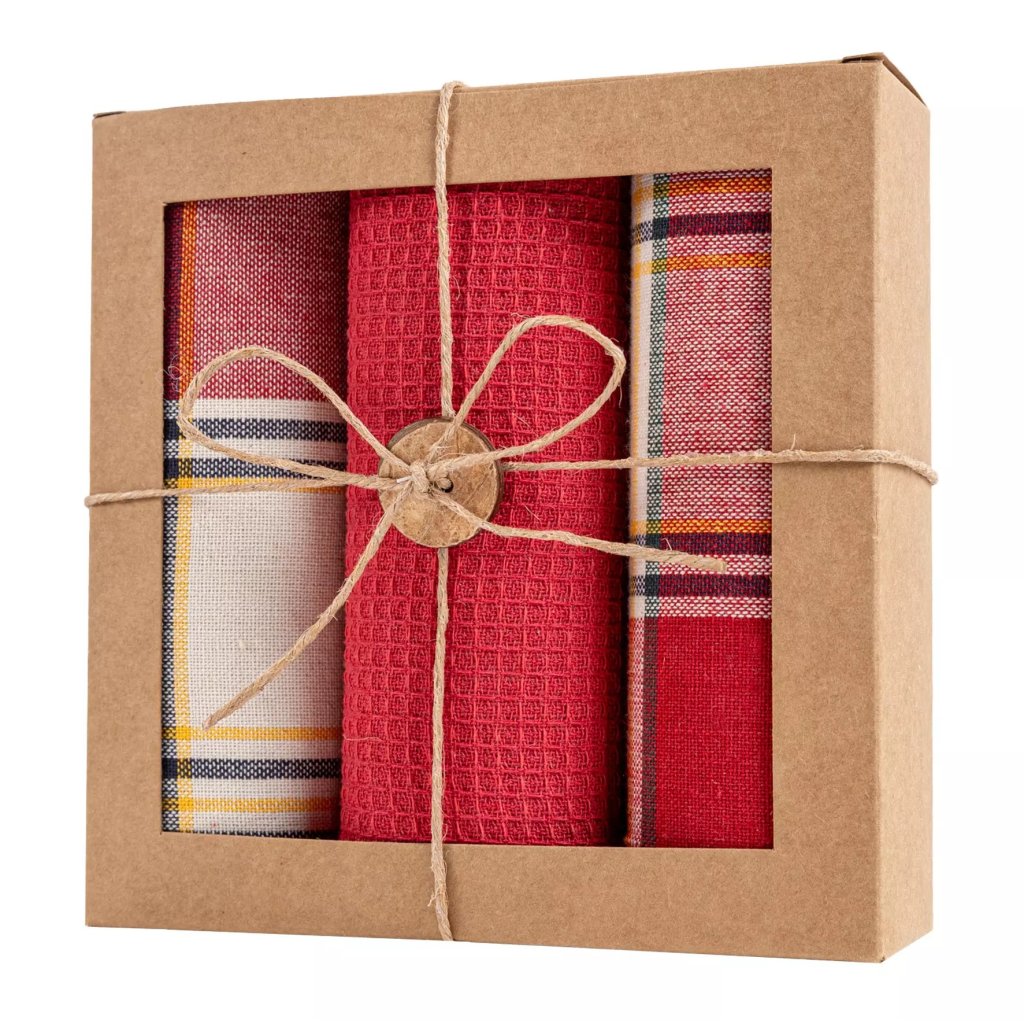 Sada 3 kuchyňských utěrek zabalených v esteticky příjemné dárkové krabičce s okénkem. Perfektní jako dárek nebo jako stylový doplněk do vaší vlastní kuchyně.