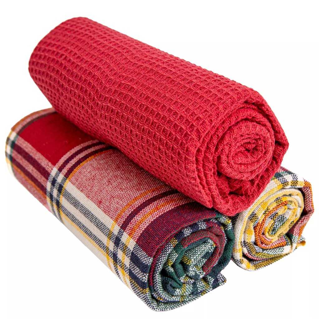 - Sada bsahuje: 3 utěrky (2 kostkované + 1 vaflově červené)
