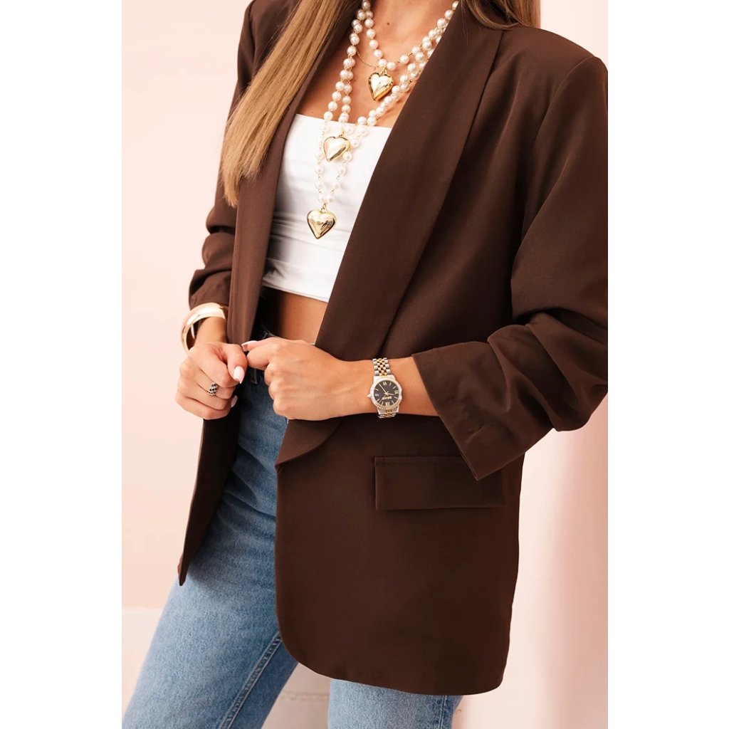 Představujeme vám elegantní sako. Sako bez knoflíků s předními klopami. Tento model bude skvělou volbou pro mnoho typů siluet a dodá každému stylingu nenucenou eleganci. Je základem každého šatníku a stylovým prvkem pro speciální úkoly - pro každé roční období a každou příležitost. Sako je vyrobena z vysoce kvalitního materiálu. Sako má podšívku.Velikost je univerzální a vyhovuje dámským velikostem S, M a L.