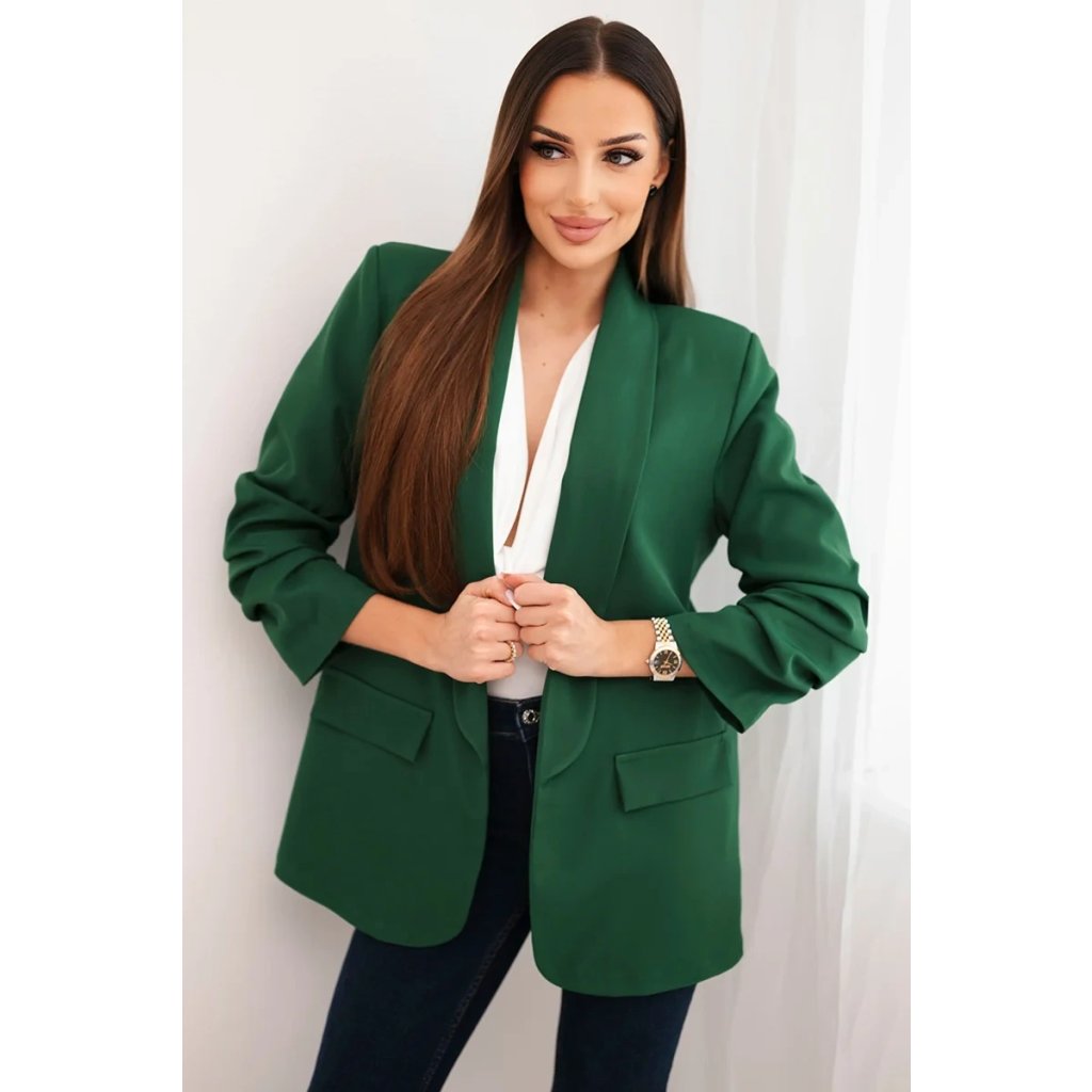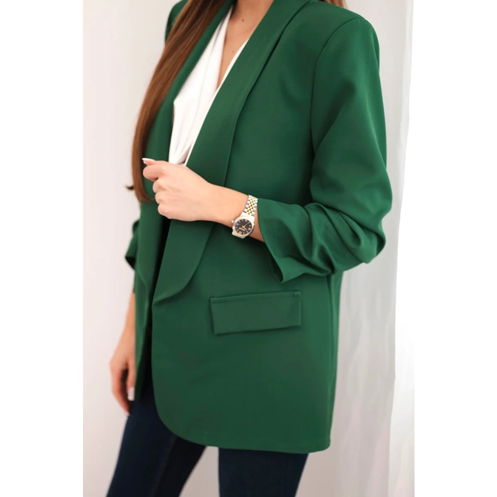 Představujeme vám elegantní sako. Sako bez zapínání s klopami vpředu. Tento model bude skvělou volbou pro mnoho typů postav, dodávající každému outfitu nenucenou eleganci. Je to základ každého šatníku a prvek stylizace pro speciální příležitosti - na každé roční období a na každou příležitost. Sako je vyrobeno z vysoce kvalitního materiálu. Sako má podšívku. Velikost je univerzální a bude vhodná pro dámy ve velikosti S, M a L.