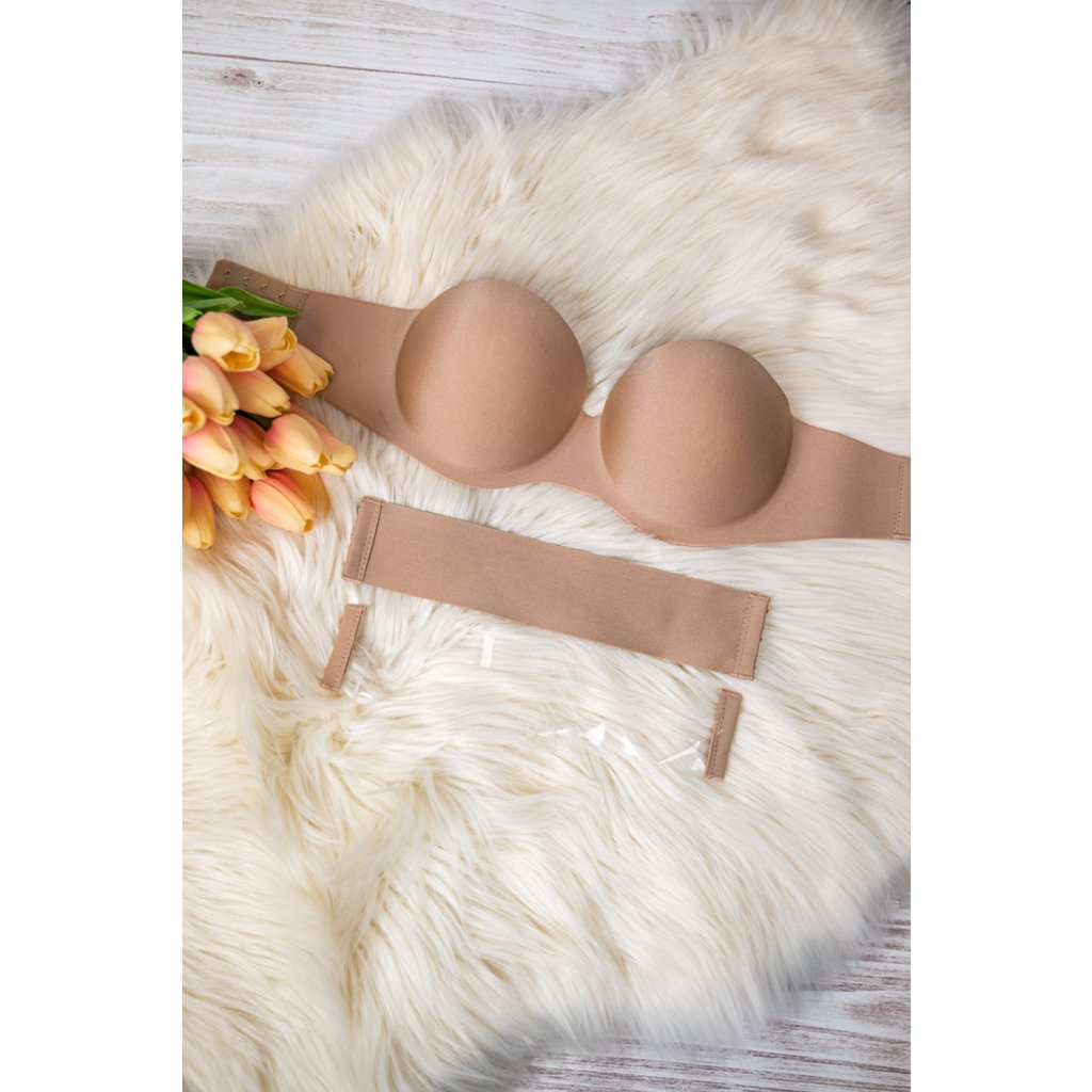 Lehká samodržící podprsenka v béžové barvě.- střih bardotka
