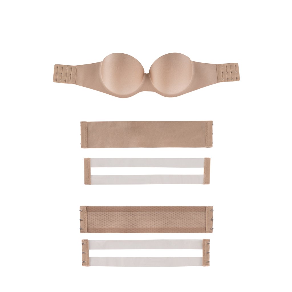 Lehká samodržící podprsenka v béžové barvě.- střih bardotka