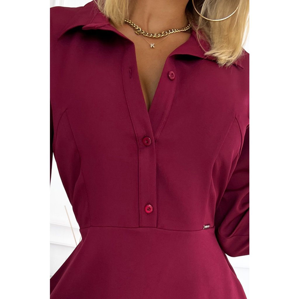 SANDY Košilové rozevláté šaty s kapsami ve vínové barvě. Vyrobeno z příjemného na dotek, málo elastického materiálu (95% polyester, 5% elastan). Značka Numoco. Polská výroba.