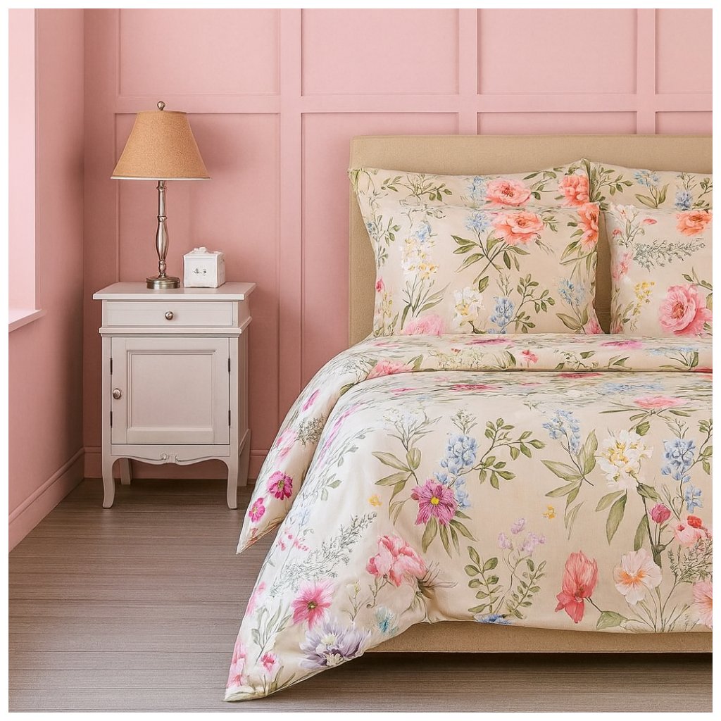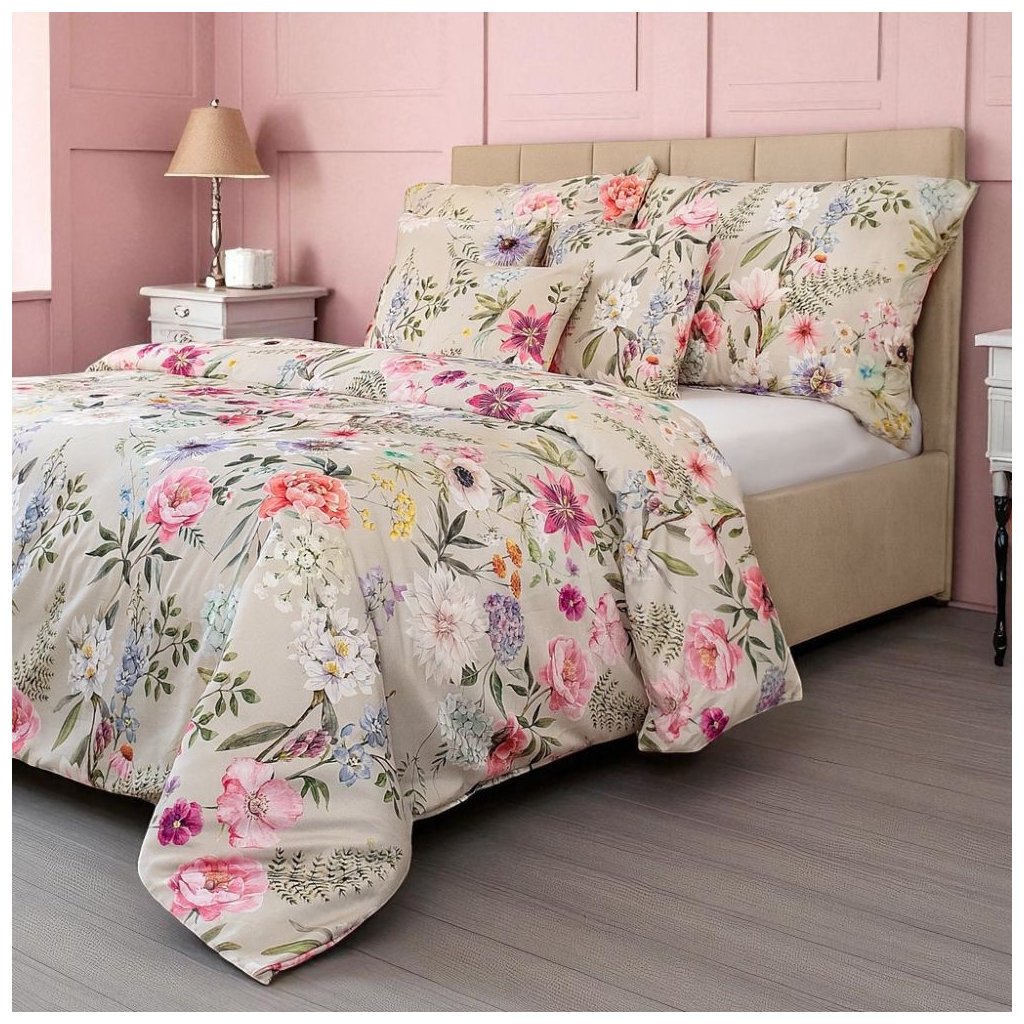 Saténové povlečení Botanica elegance v sytých i pastelových barvách vytváří veselou, svěží a romantickou atmosféru připomínající rozkvetlou jarní zahradu.