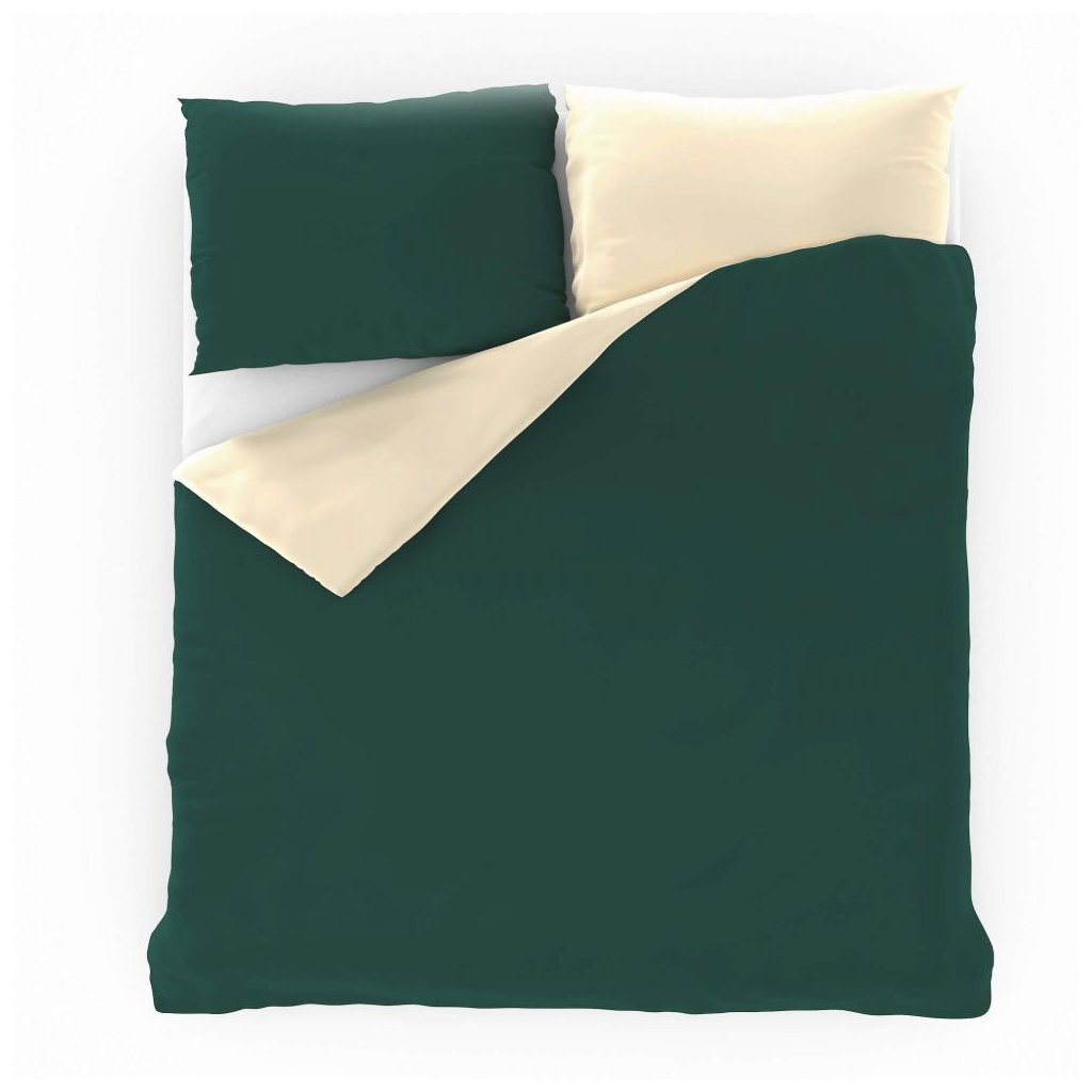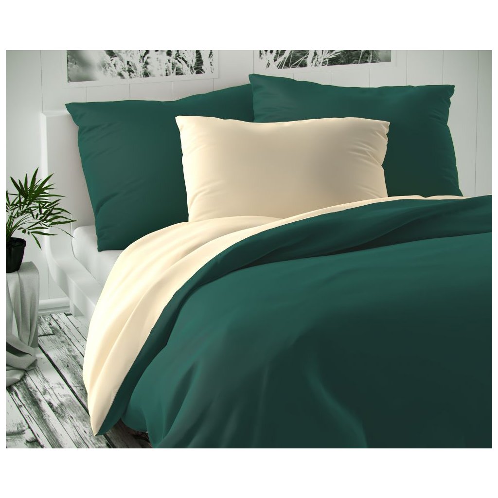 Saténové povlečení LUXURY COLLECTION 140x200, 70x90cm tmavě zelené / smetanové