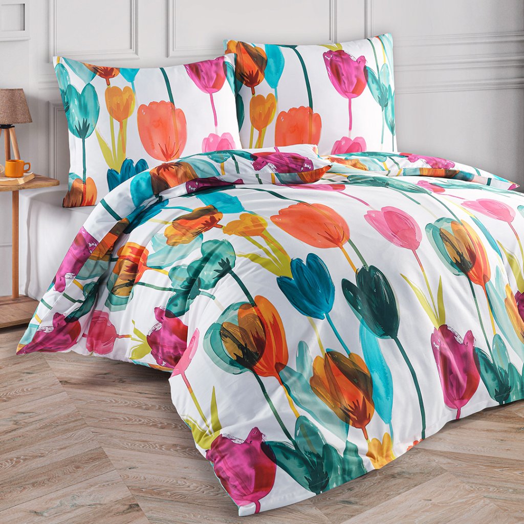 Luxusní povlečení s velkými, barevnými tulipány, bude ozdobou Vaší ložnice