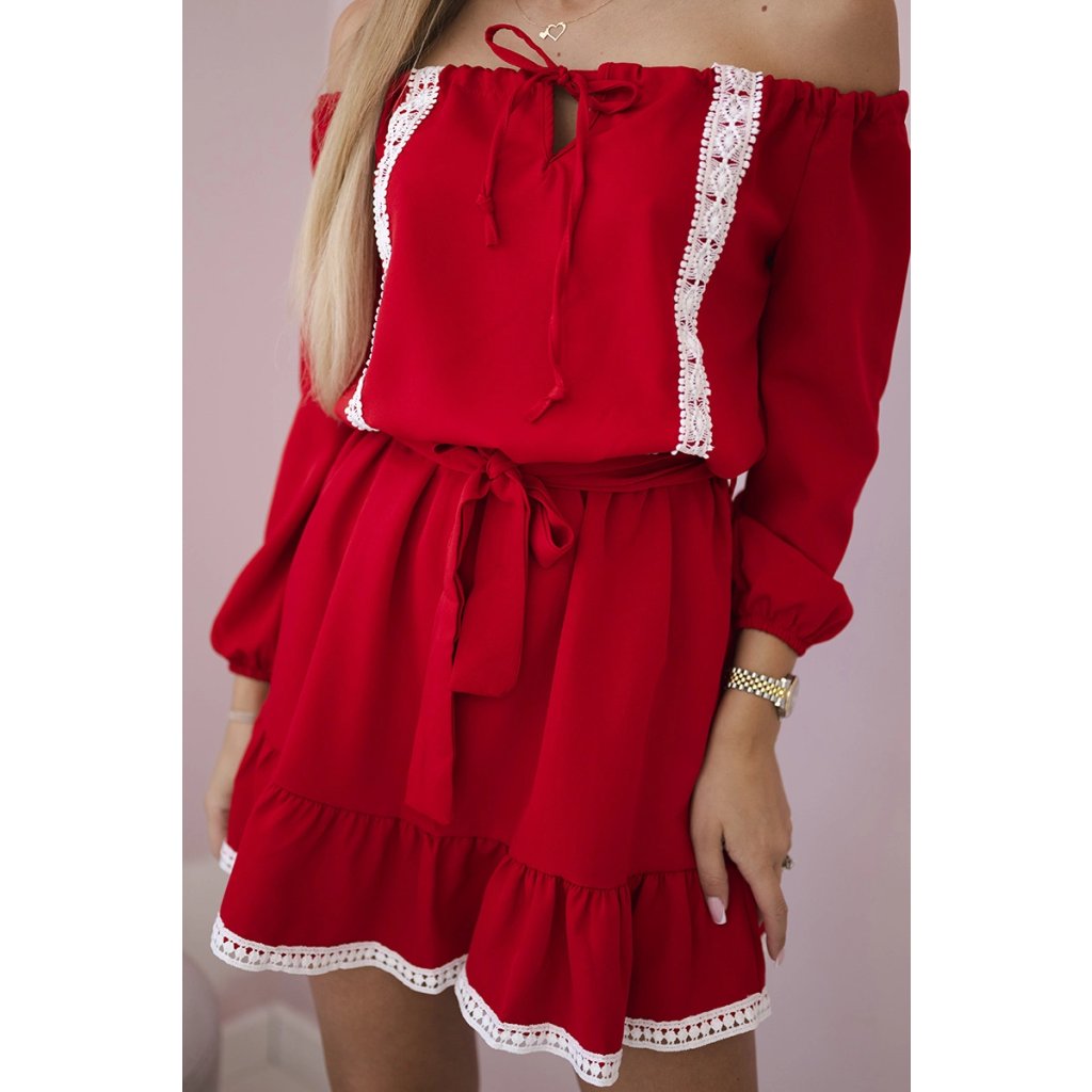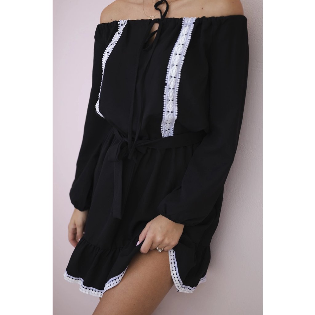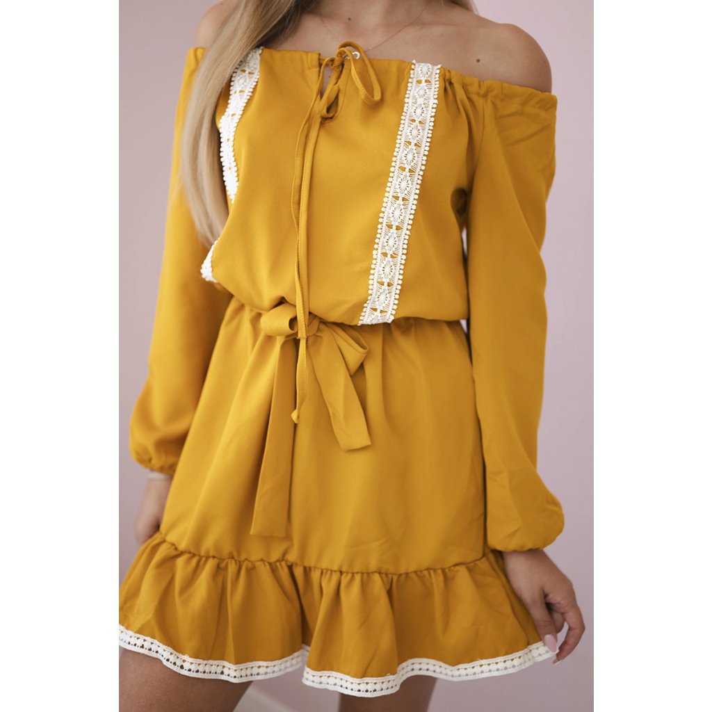 Představujeme vám pohodlné šaty. Šaty zavázané v pase. Španělské šaty s krajkovou stuhou. Velmi módní střih. Šaty jsou vyrobeny z vysoce kvalitního materiálu.