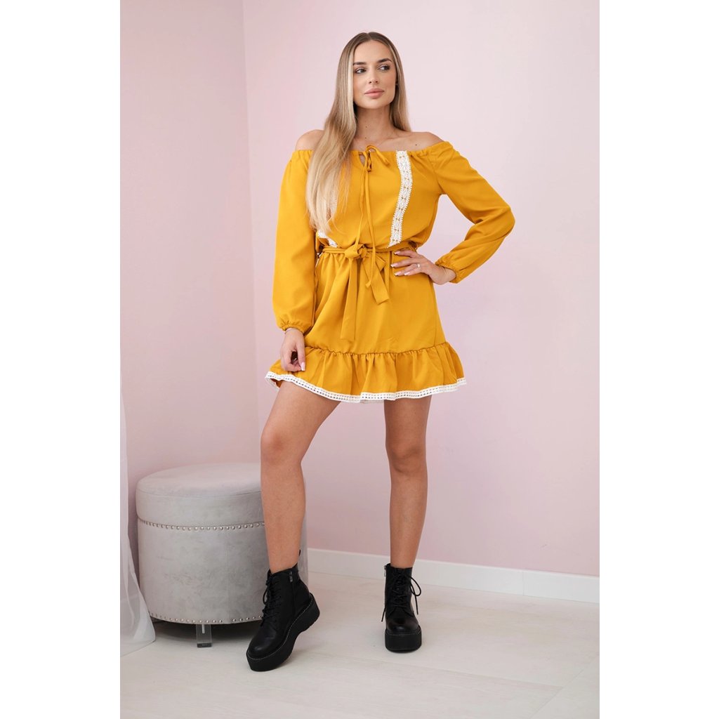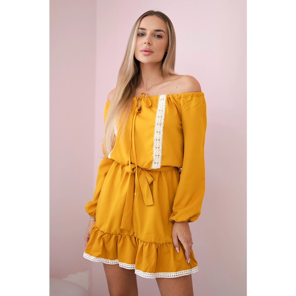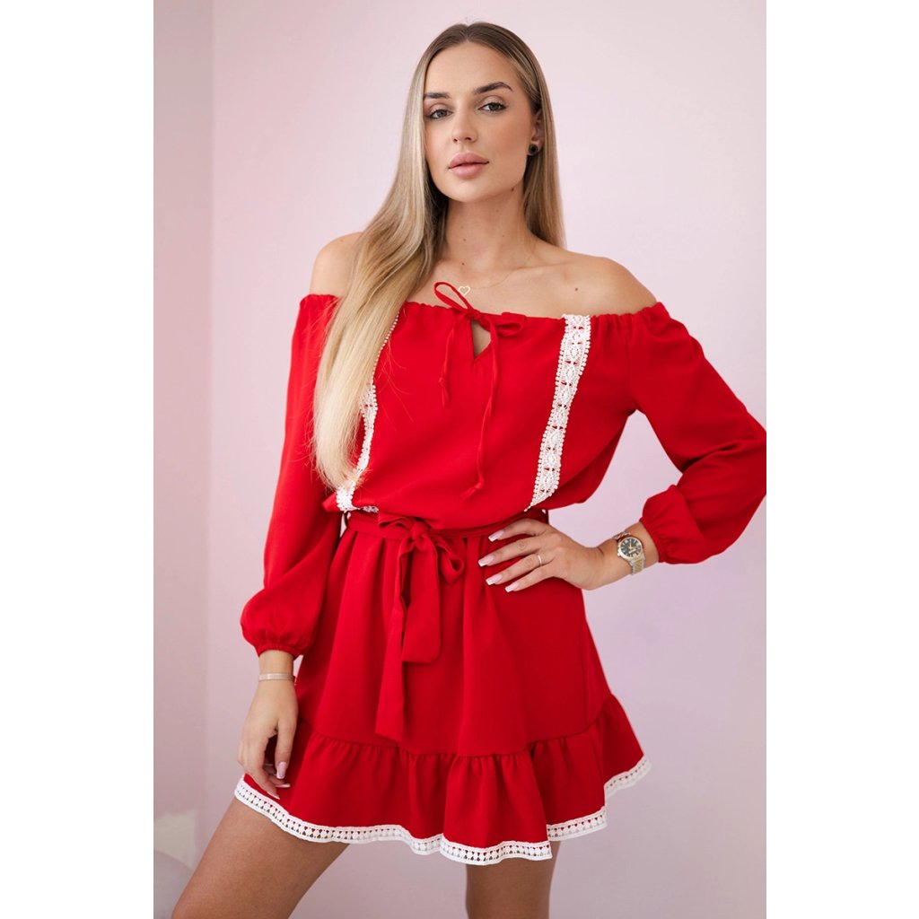 Představujeme vám pohodlné šaty. Šaty zavázané v pase. Španělské šaty s krajkovou stuhou. Velmi módní střih. Šaty jsou vyrobeny z vysoce kvalitního materiálu.