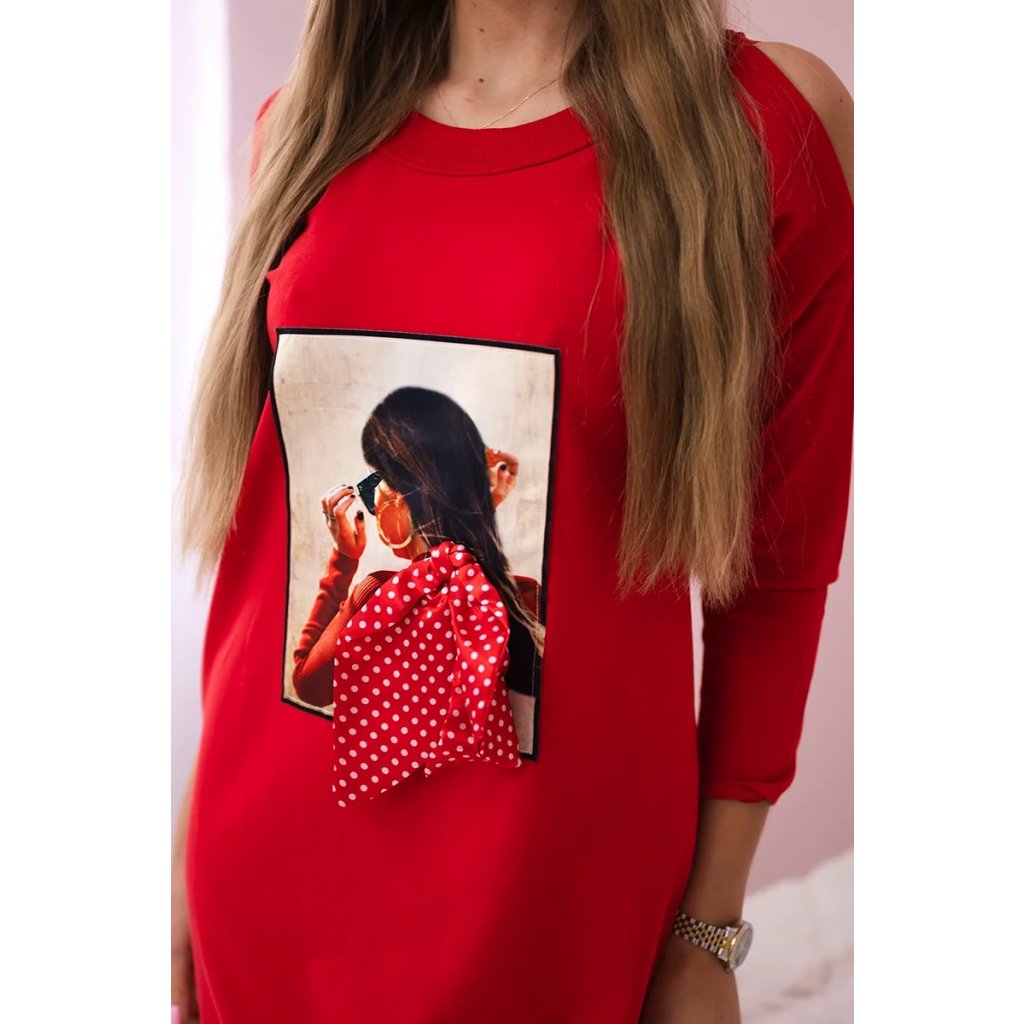 Představujeme vám módní šaty. Šaty má našitou grafiku s ozdobnou mašlí. Šaty s průstřihy na ramenou. Ideální pro každodenní použití. Šaty jsou vyrobeny z vysoce kvalitního materiálu.