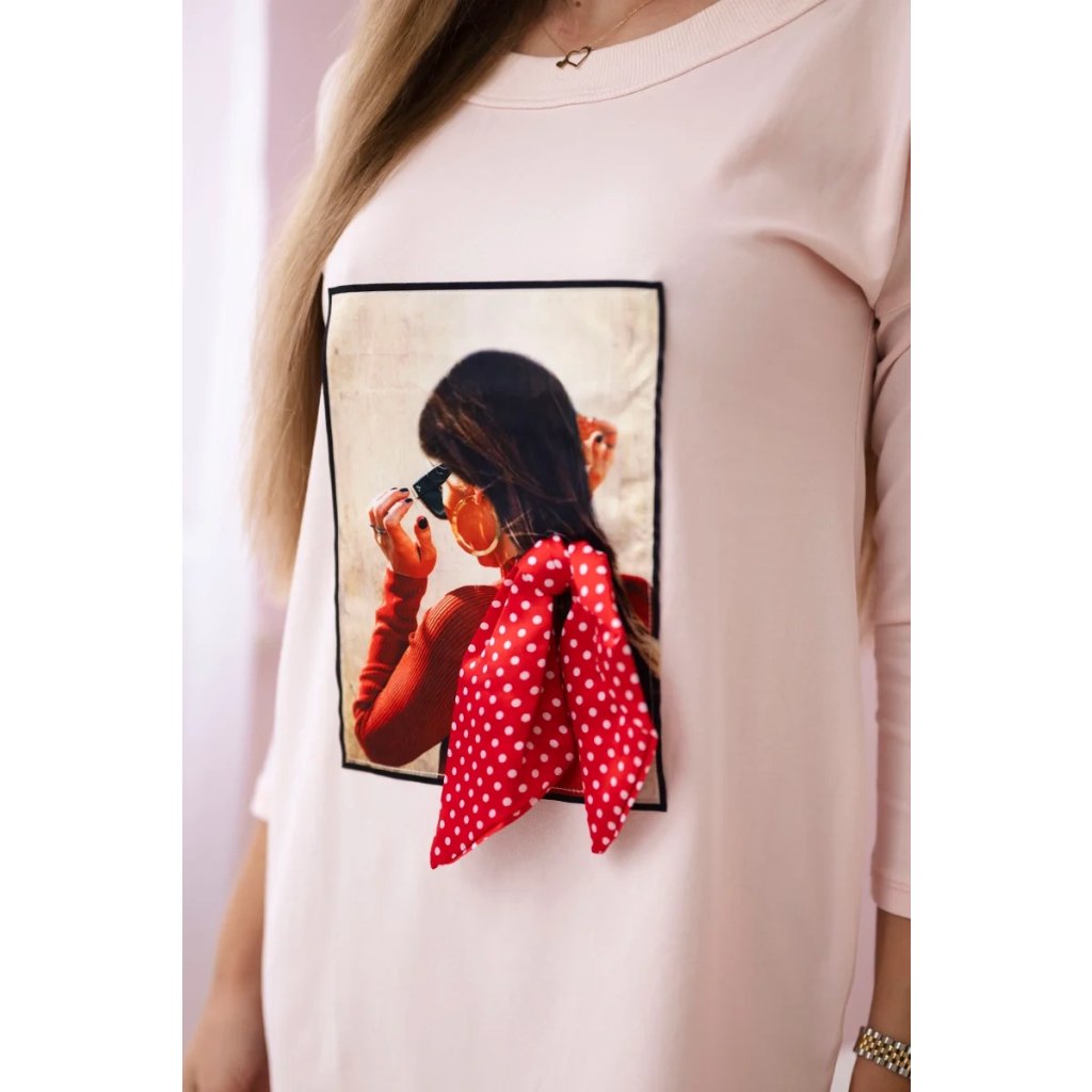 Šaty 66817 s grafikou a 3D zdobené mašlí