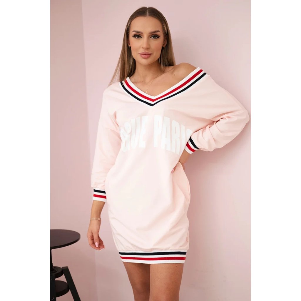 Představujeme vám pohodlné šaty s výstřihem do V a nápisem Vogue Paris.Šaty jsou vyrobeny z vysoce kvalitního materiálu. Velikost je univerzální a vyhovuje dámám, které nosí velikost S, M nebo L.