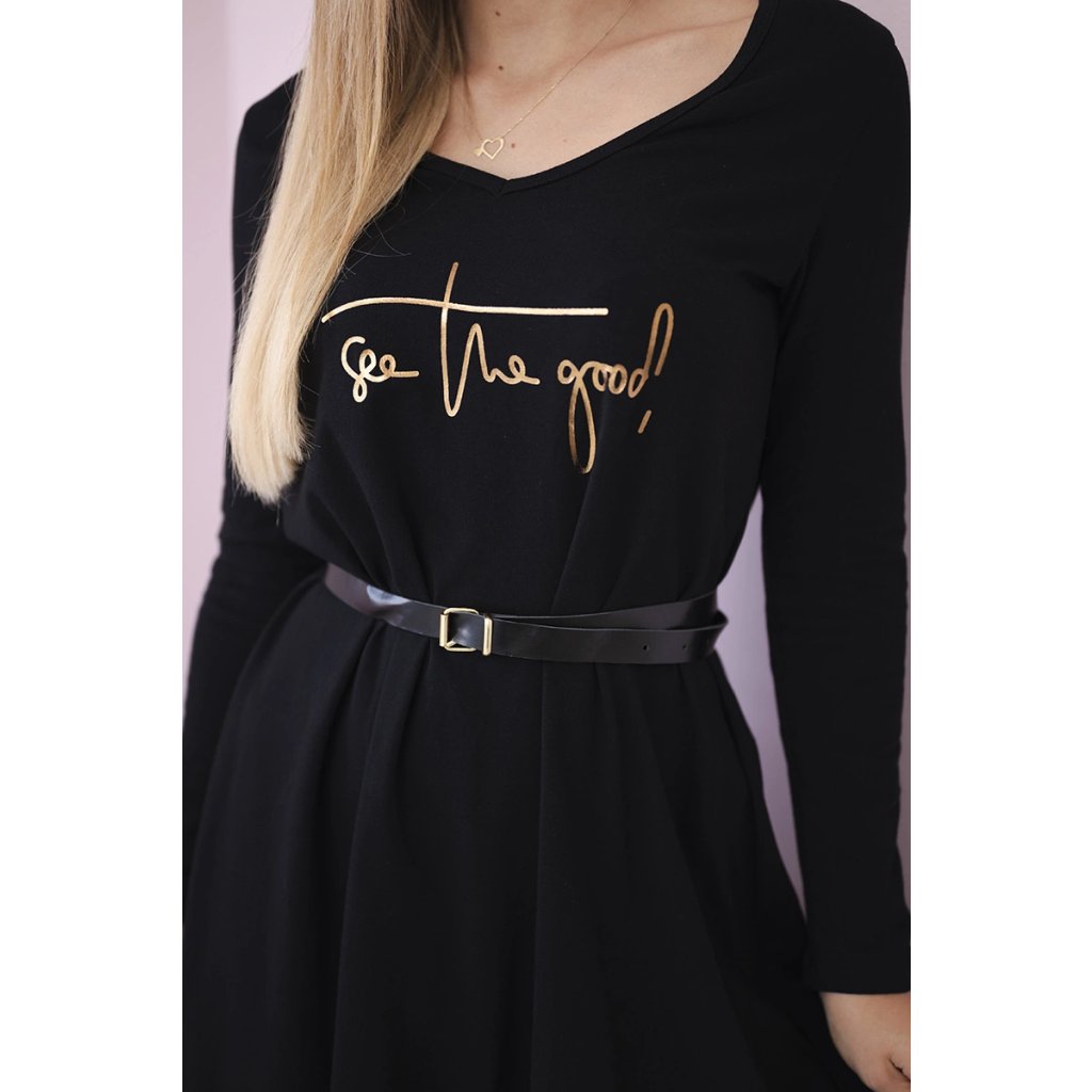 Šaty 9160 s ozdobným páskem a nápisem