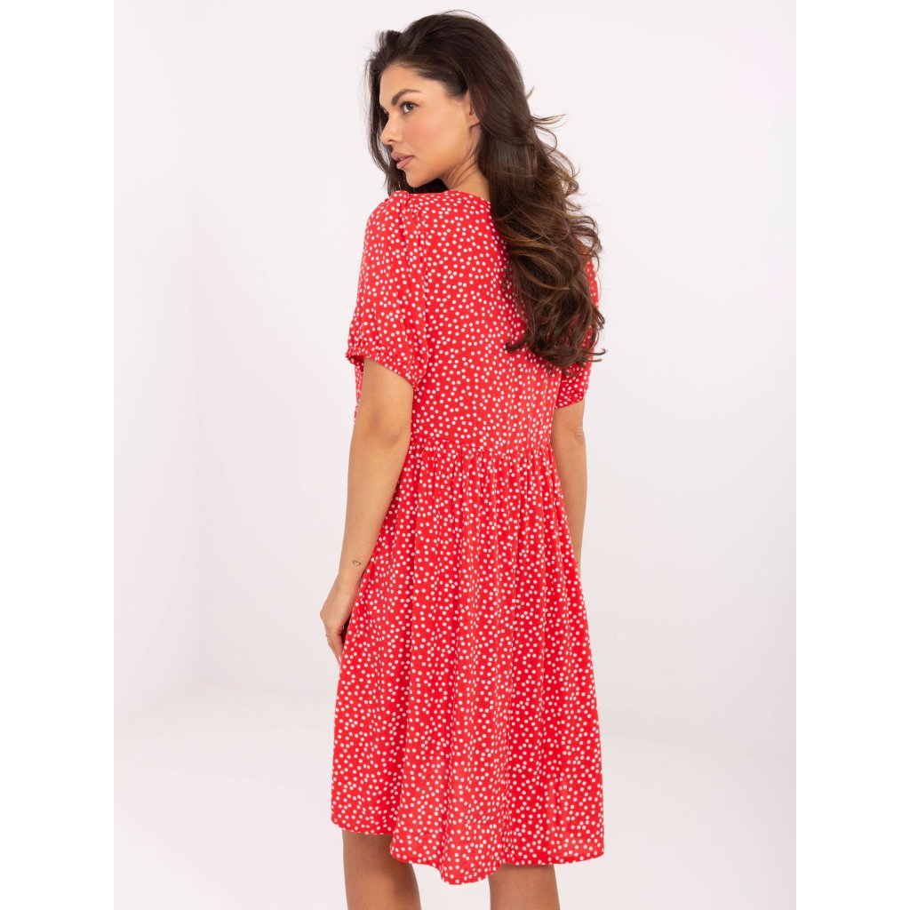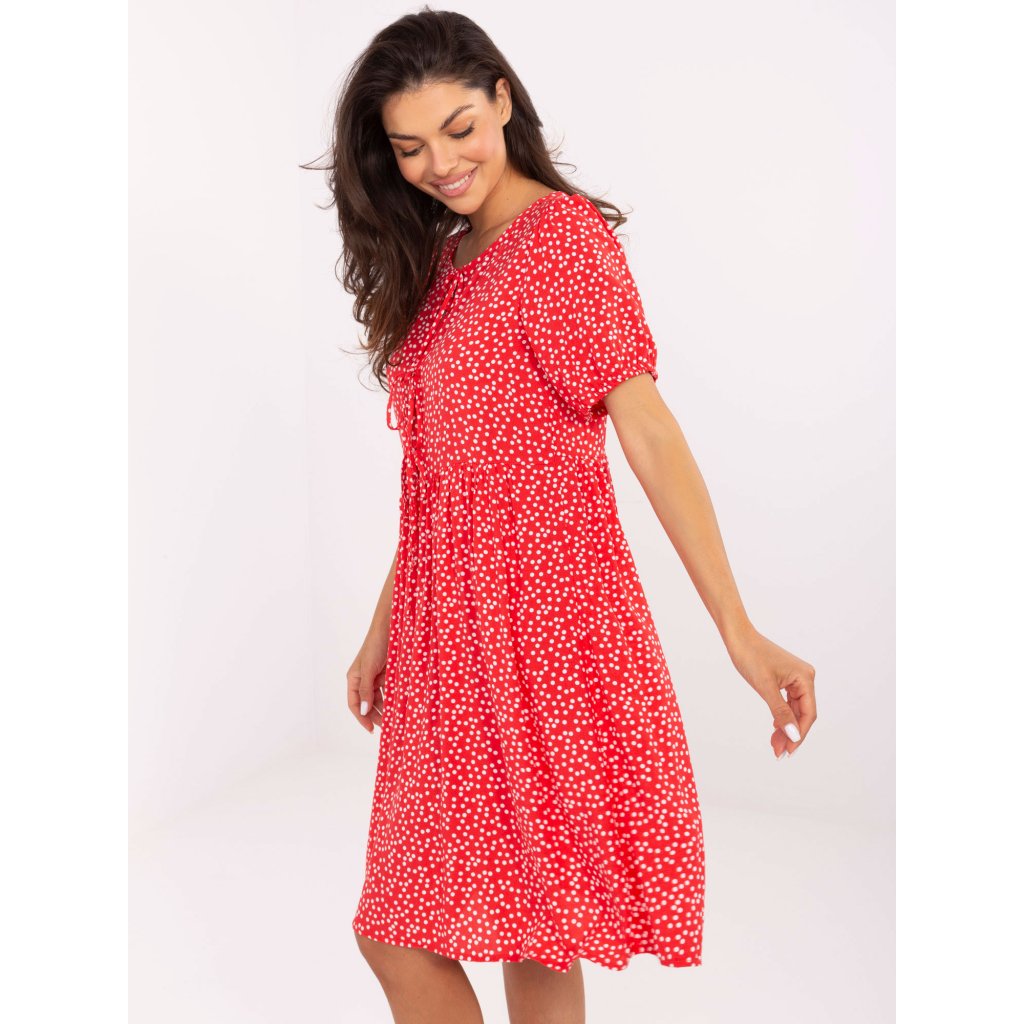 Míry šatů ve velikosti S: od podpaží k podpaží - 49 cm, od pasu k pasu - 44 cm, délka rukávu - 25 cm, od boků k bokům - 75 cm, celková délka - 98 cm.