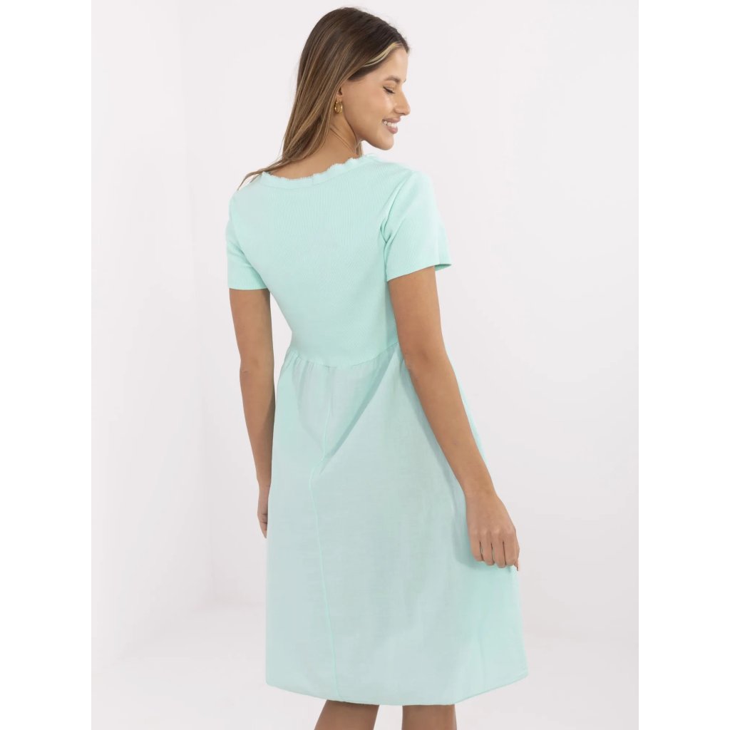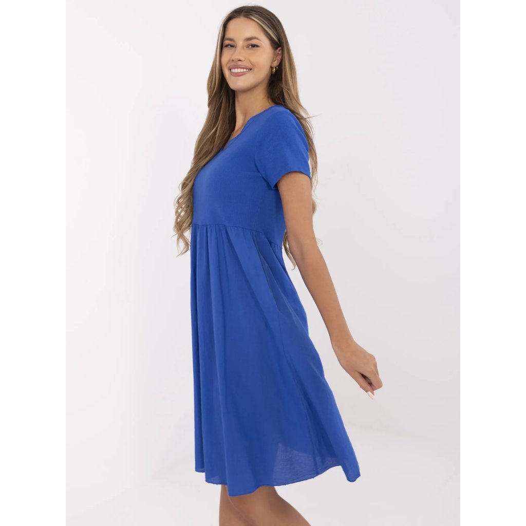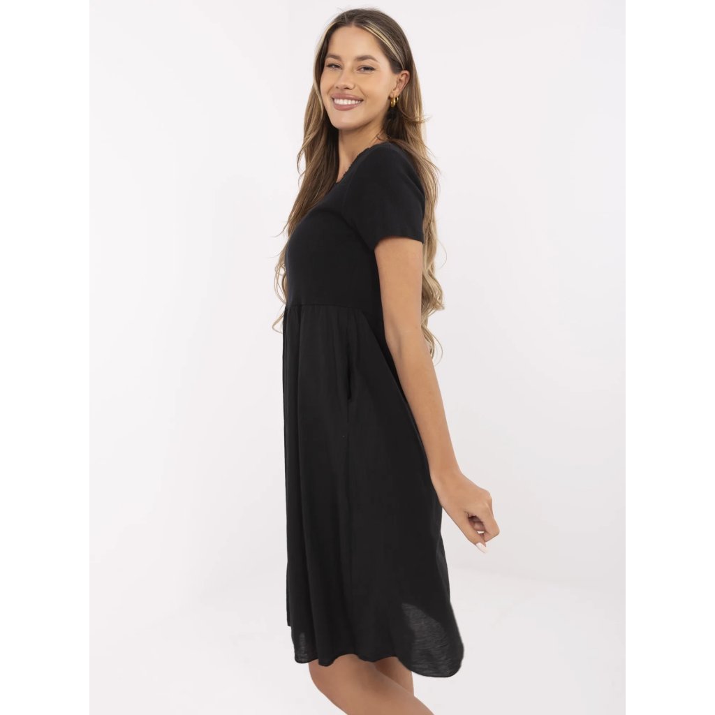 Rozměry šatů ve velikosti one size: šířka v podpaží - 46 cm (v rozloženém stavu), šířka v podpaží - 92 cm (po natažení), délka rukávu - 17 cm, šířka v pase - 43 cm (v rozloženém stavu), šířka v pase - 67 cm (po natažení), šířka v bocích - 63 cm, celková délka - 103 cm.