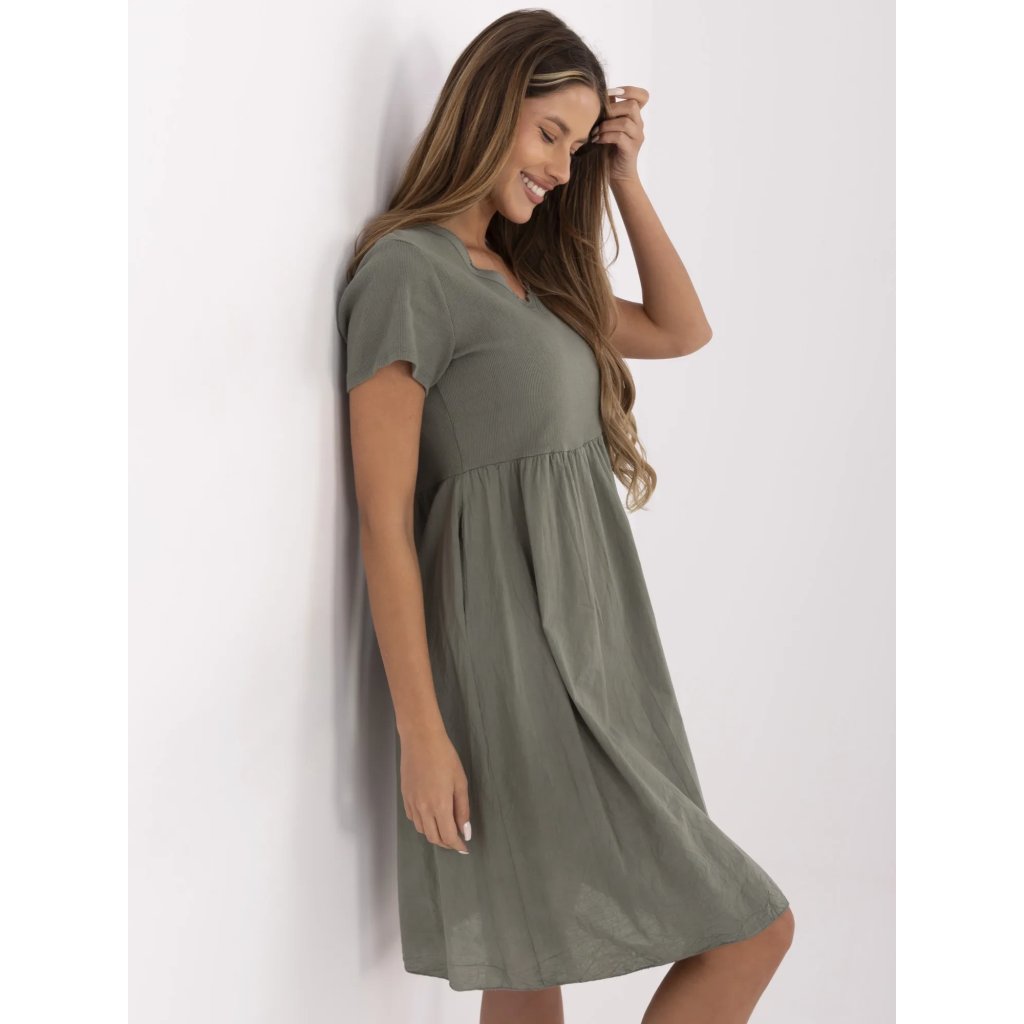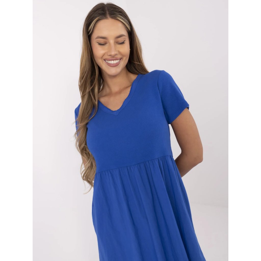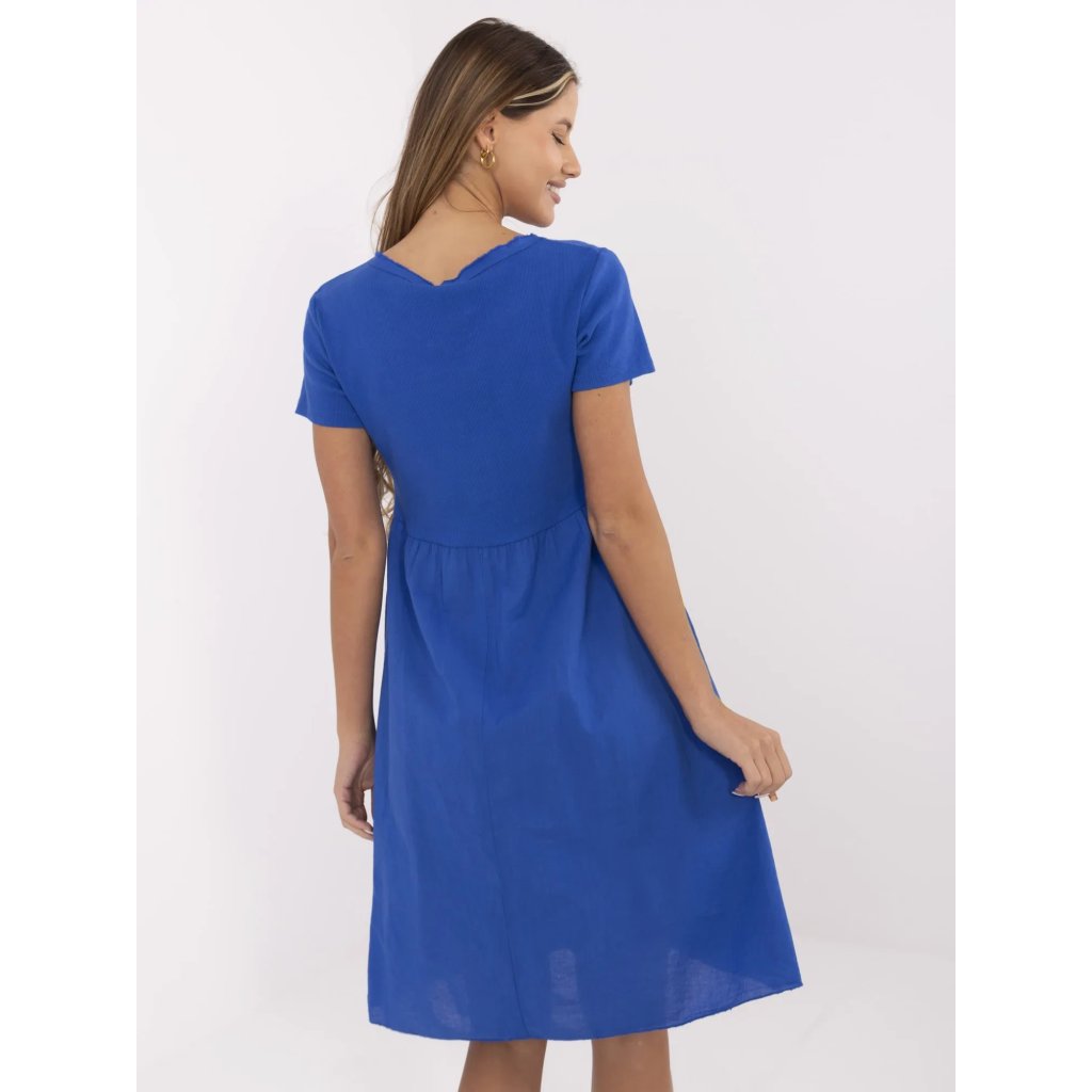 Rozměry šatů ve velikosti one size: šířka v podpaží - 46 cm (v rozloženém stavu), šířka v podpaží - 92 cm (po natažení), délka rukávu - 17 cm, šířka v pase - 43 cm (v rozloženém stavu), šířka v pase - 67 cm (po natažení), šířka v bocích - 63 cm, celková délka - 103 cm.