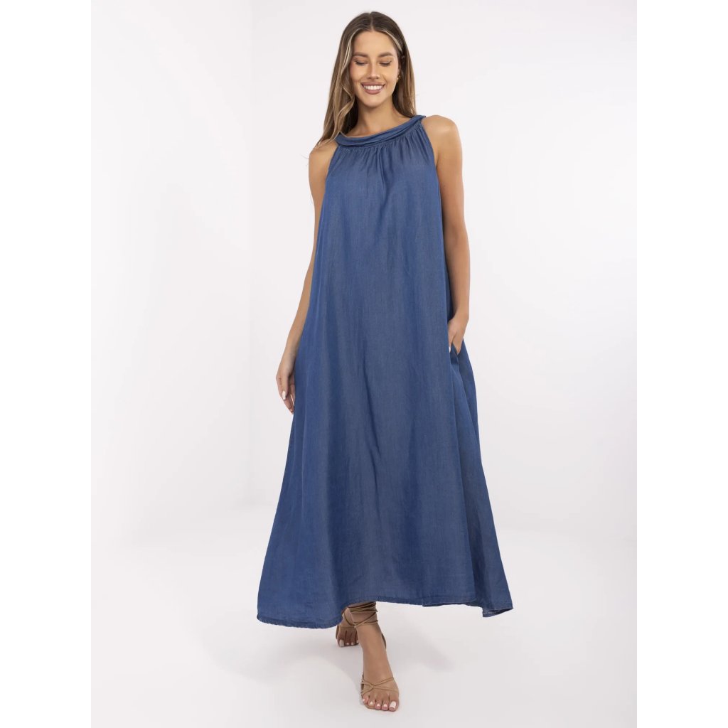 Míry šatů ve velikosti one size měřeno v plochém stavu: šířka v podpaží - 64 cm, šířka v pase - 68 cm, šířka v bocích - 70 cm, celková délka - 128 cm.