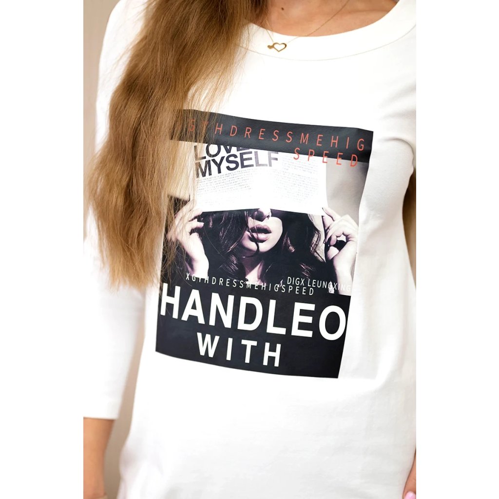 Představujeme vám módní šaty. Šaty má potisk. Šaty s průstřihy na ramenou. Ideální pro každodenní použití. Šaty jsou vyrobeny z vysoce kvalitního materiálu. Velikost je univerzální a vyhovuje dámám, které nosí velikost S, M nebo L.