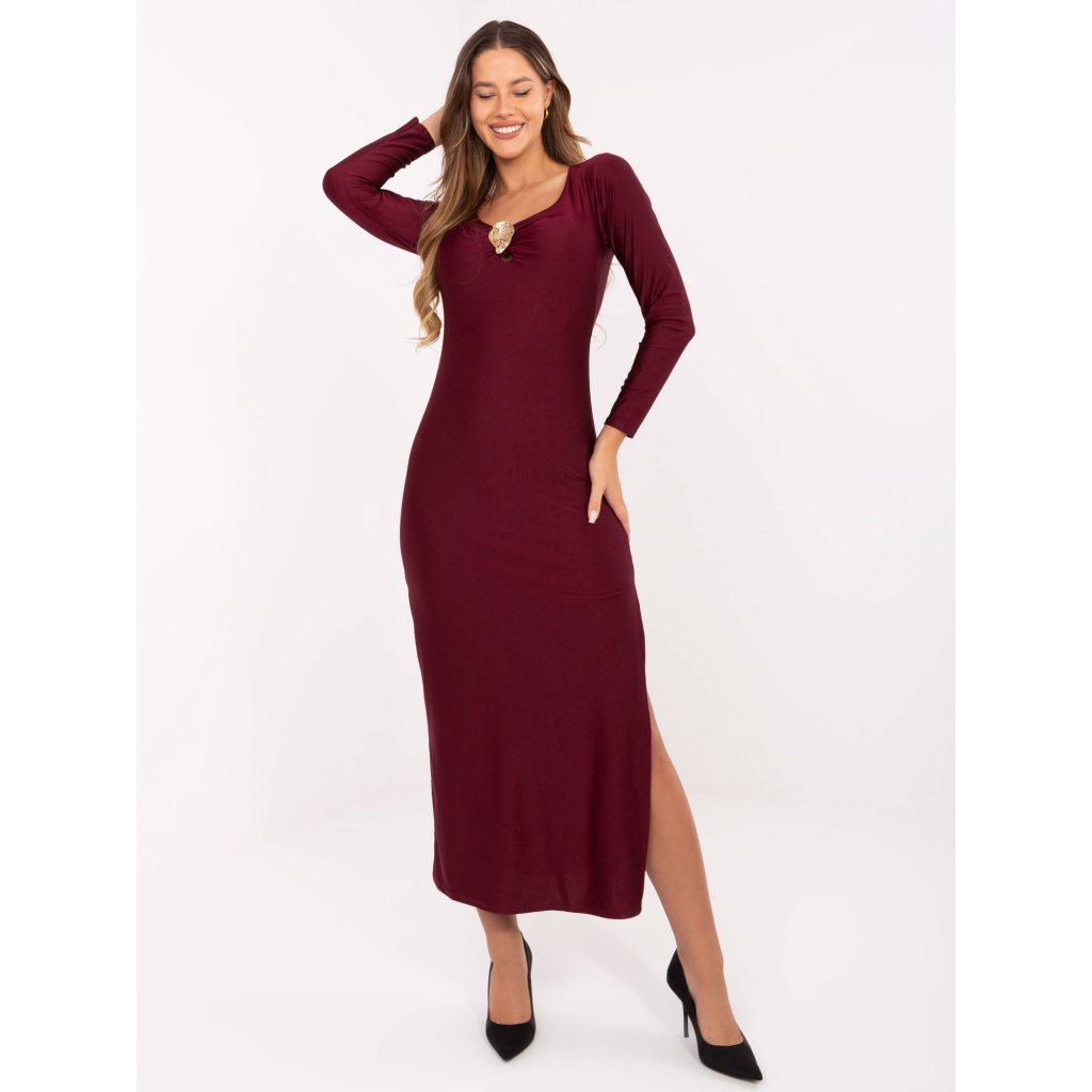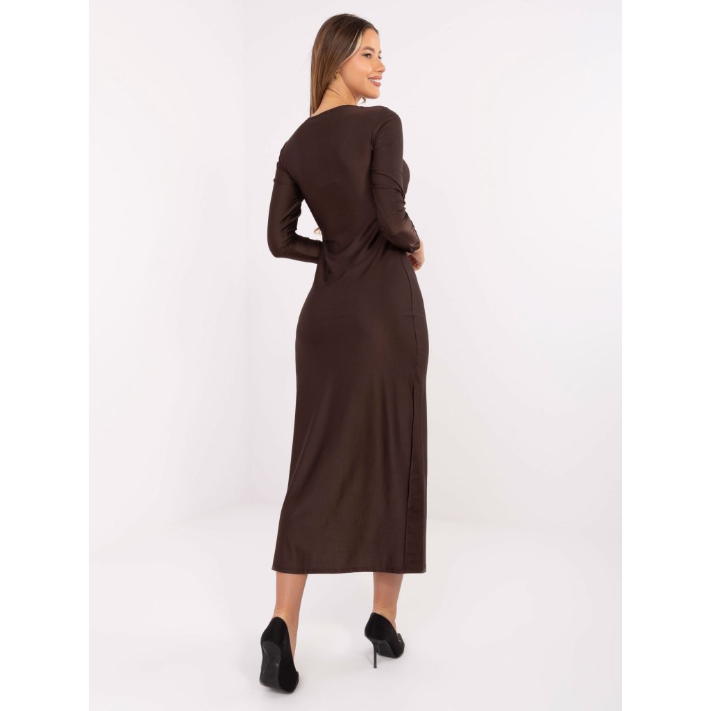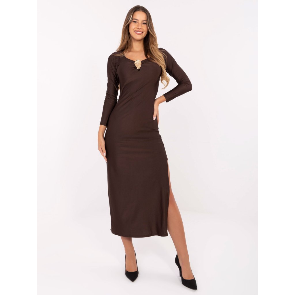 Míry šatů ve velikosti jedna: šířka v podpaží - 41 cm, šířka pasu - 40 cm, délka rukávu - 57 cm, šířka boků - 47 cm, celková délka - 139 cm.
