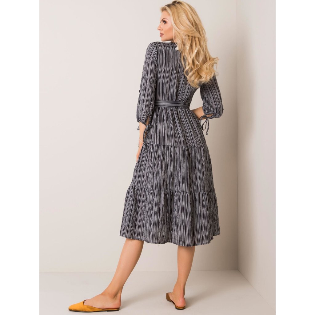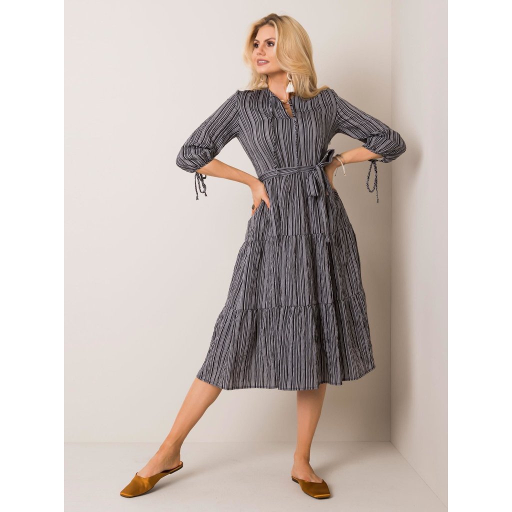 Míry šatů ve velikosti 36, v plochém stavu: podpaží - 43 cm, celková délka - 117 cm, délka rukávu - 43 cm