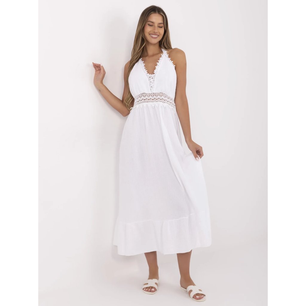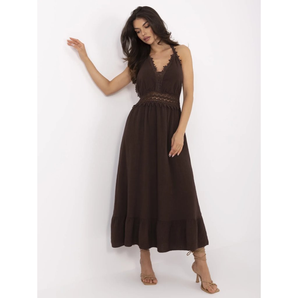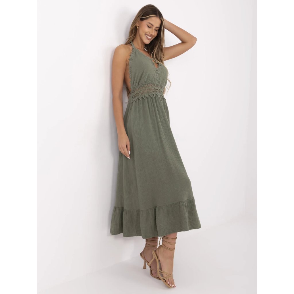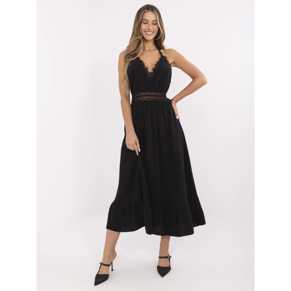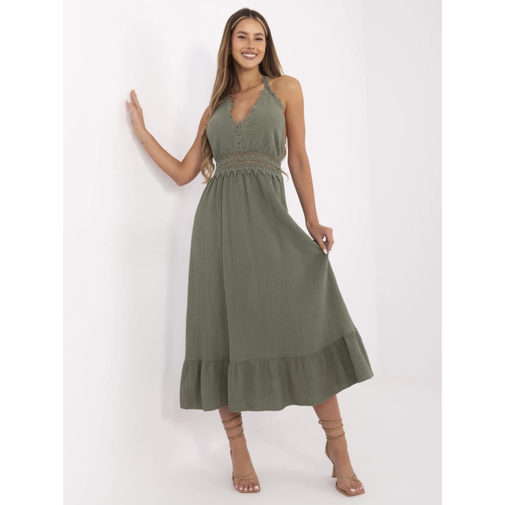 Rozměry šatů ve velikosti one size měřeno v plochém stavu: šířka v podpaží - 45 cm, šířka v pase - 34 cm, šířka v bocích - 61 cm, celková délka - 122 cm (bez zavazování), délka zavazování - 72 cm.