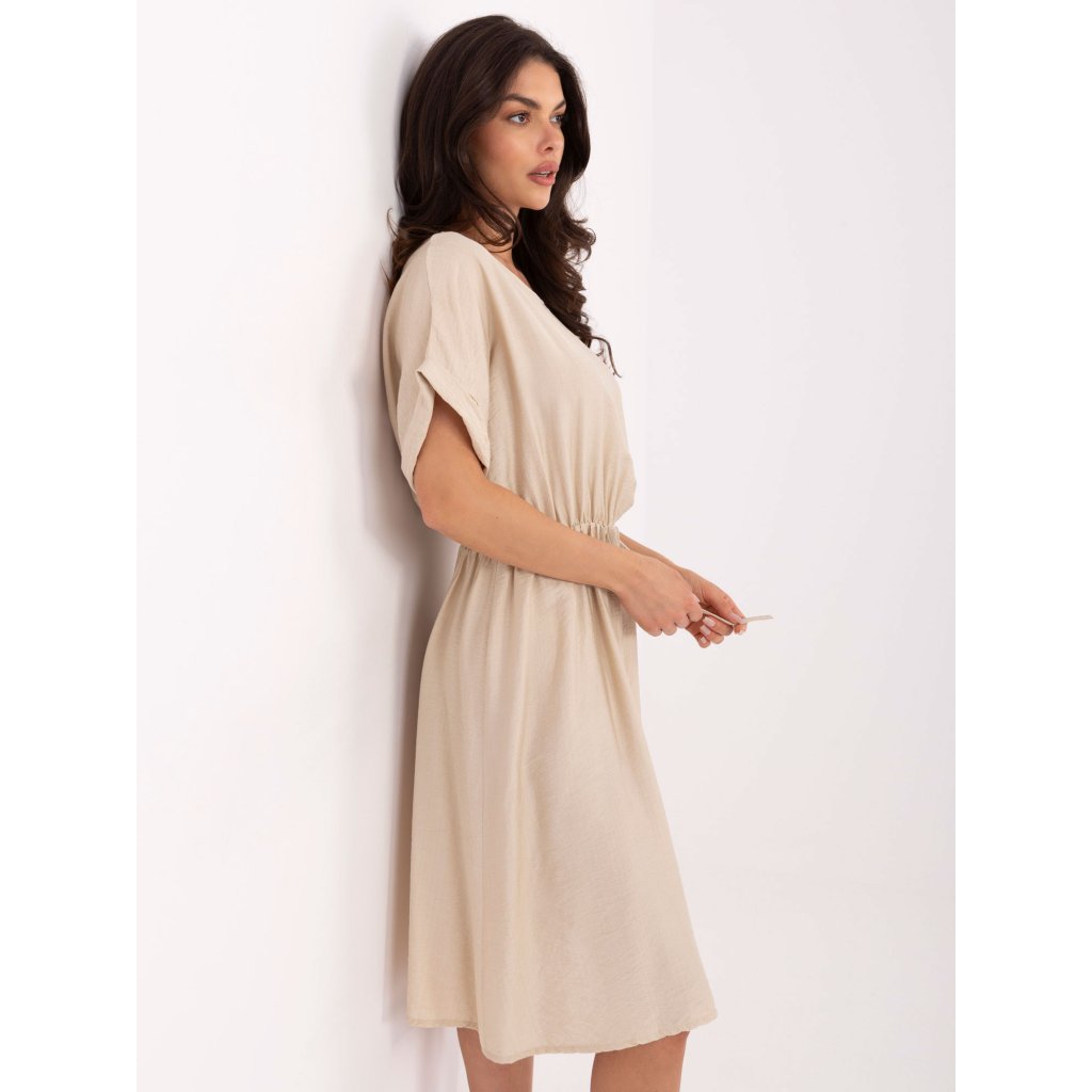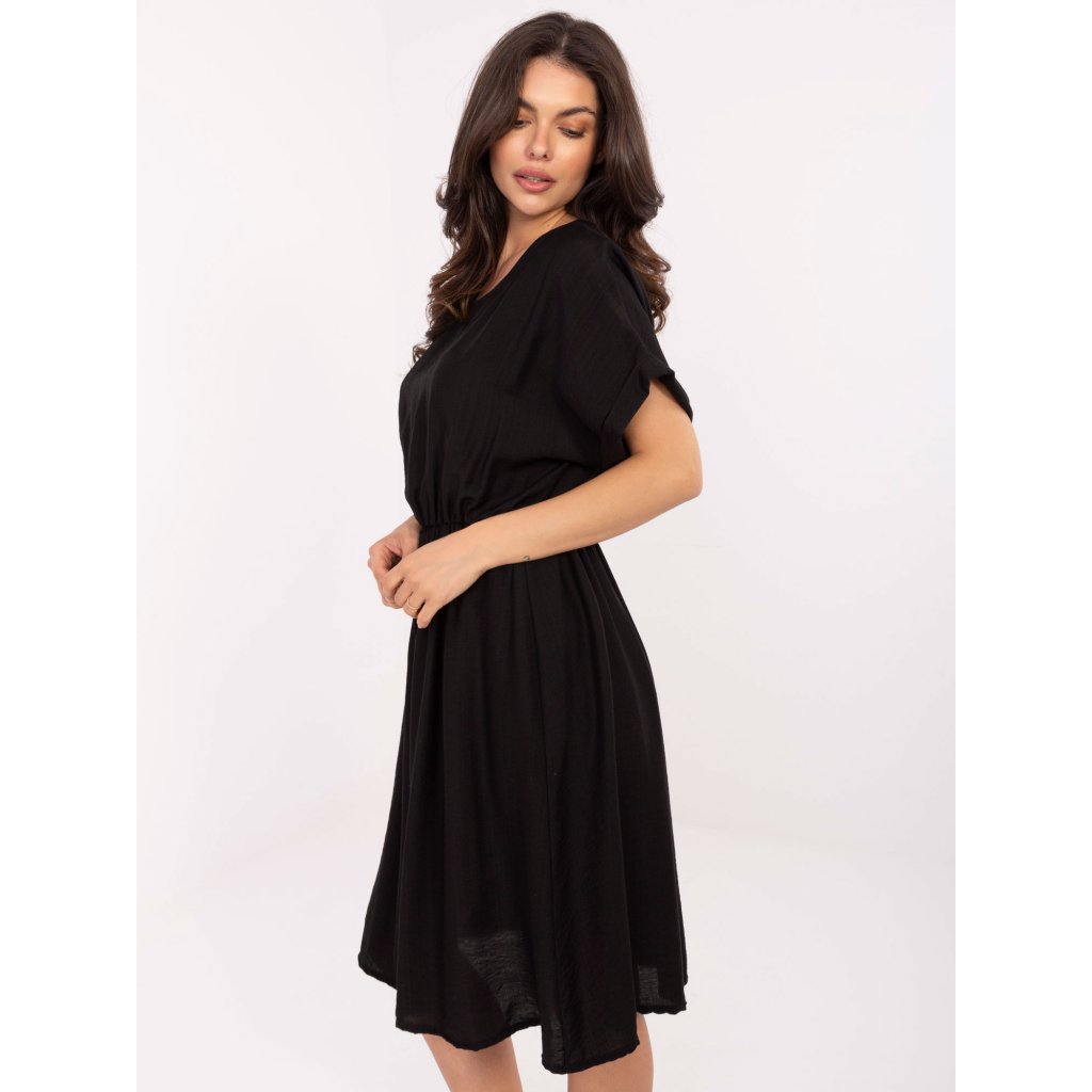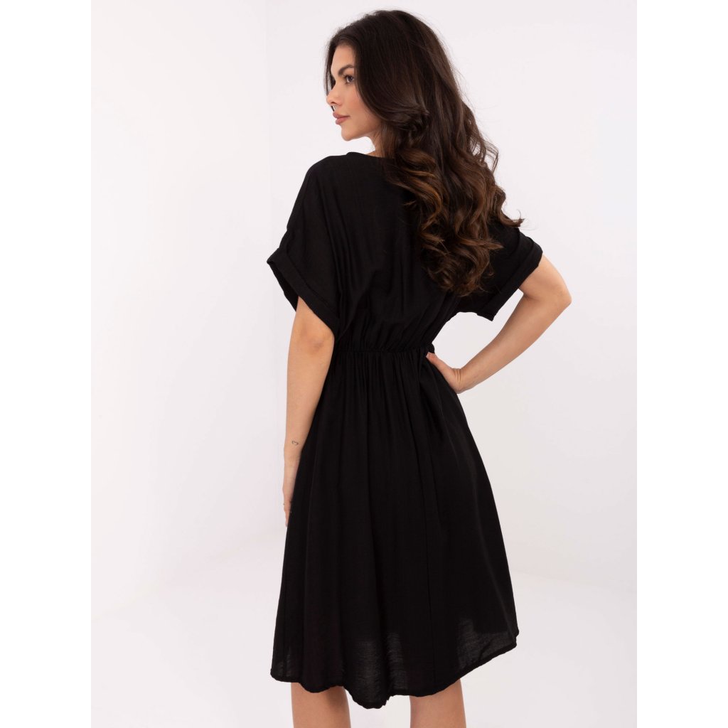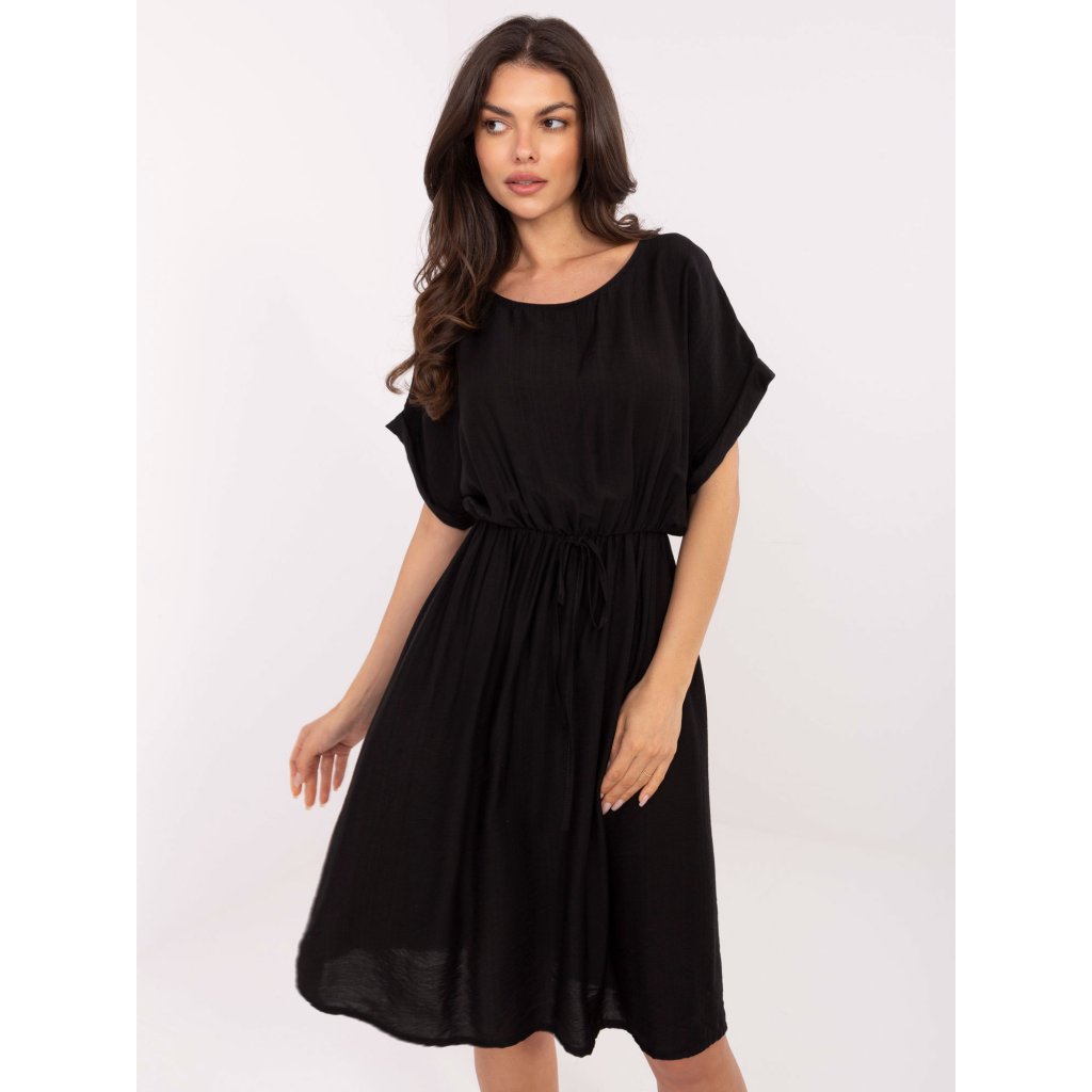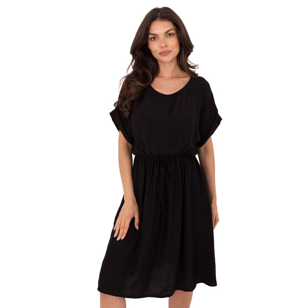 Rozměry šatů ve velikosti one size: šířka v podpaží - 52 cm, šířka v pase - 33 cm (ploché), šířka v pase - 59 cm (po natažení), délka rukávu - 27 cm, šířka v bocích - 63 cm, celková délka - 106 cm.