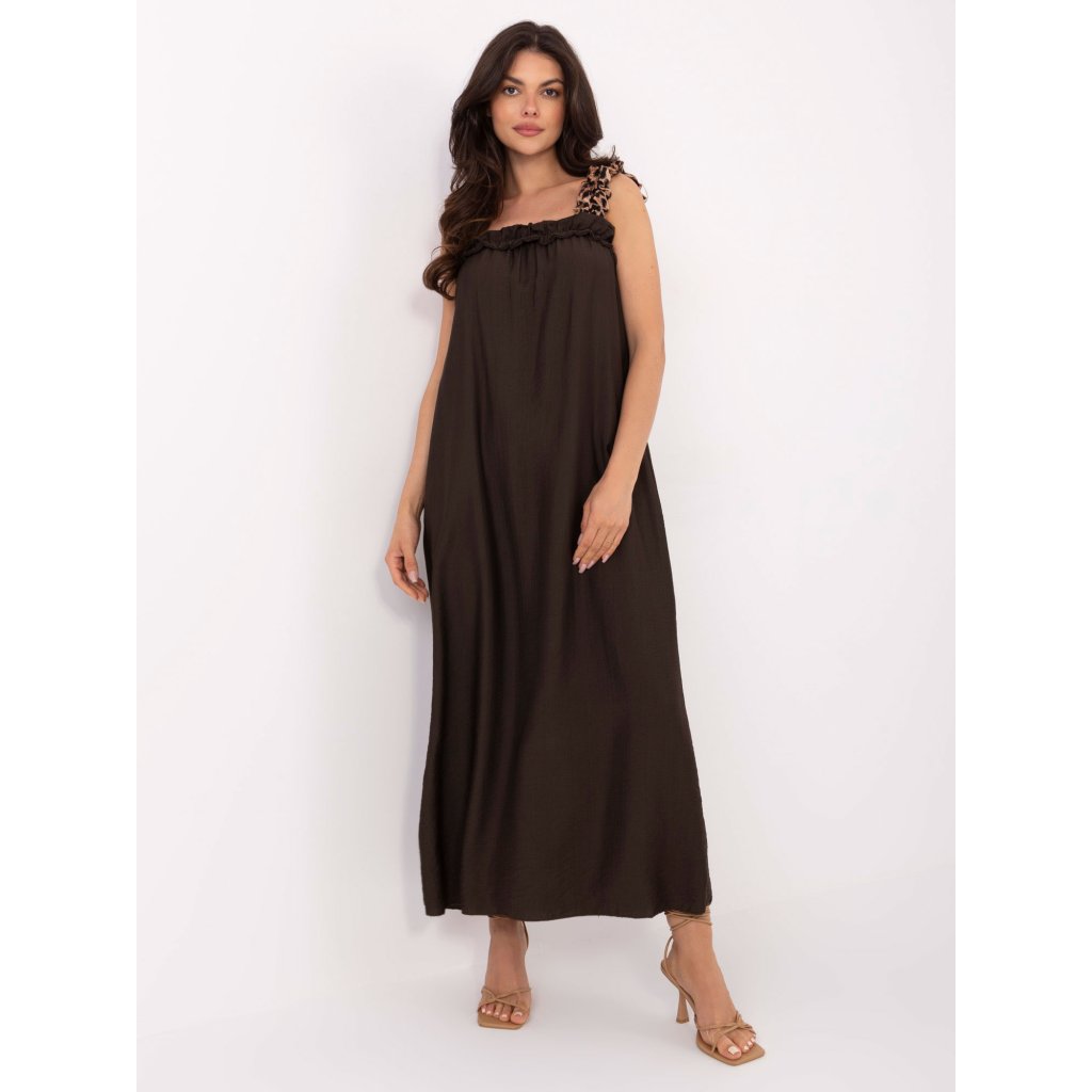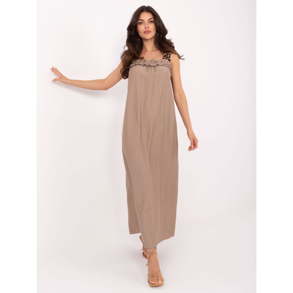 Rozměry šatů ve velikosti one size: šířka v podpaží - 31 cm (bez rukávů), šířka v podpaží - 55 cm (po natažení), šířka v pase - 60 cm, šířka v bocích - 64 cm, celková délka - 143 cm.