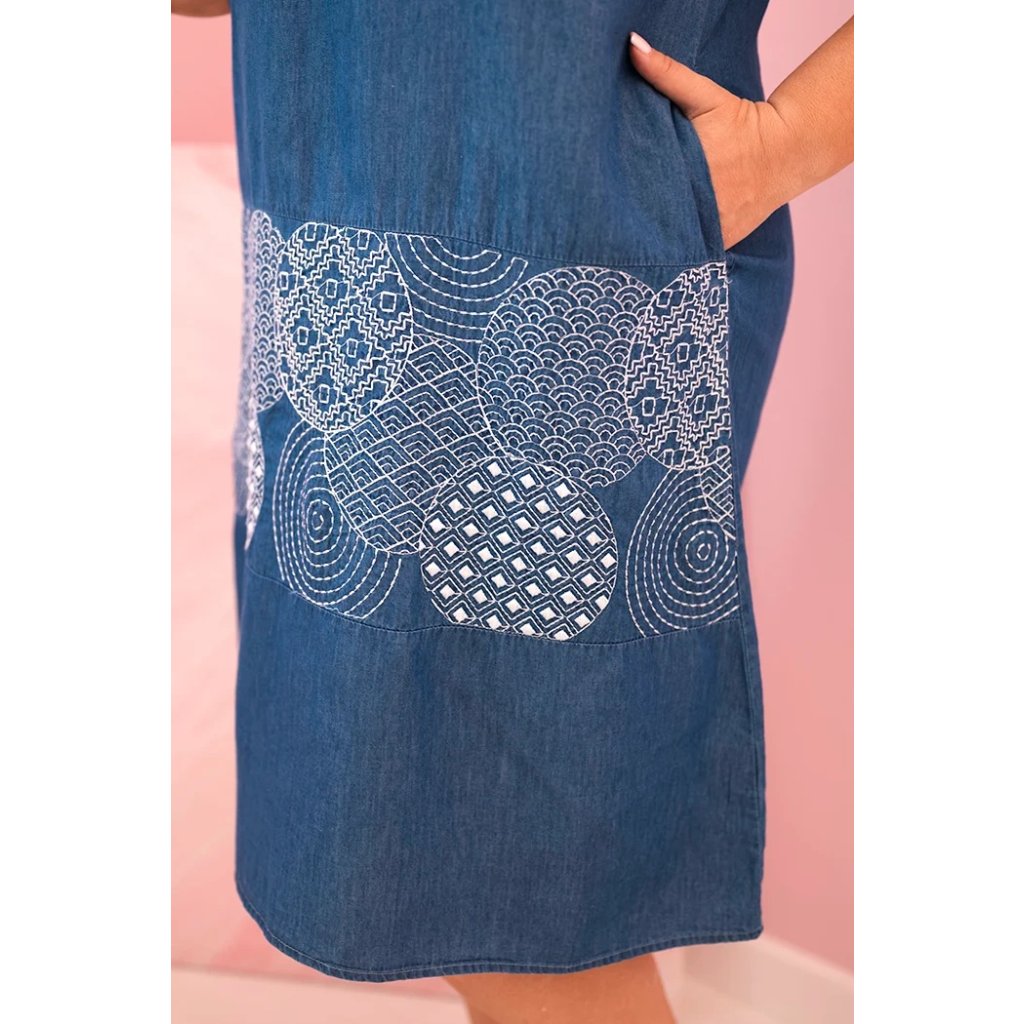 Dámské džínové šaty bez rukávů jsou ideální volbou na teplé dny – spojují módní vzhled a naprostou volnost pohybu. Volný a pohodlný střih je ideální pro každodenní nošení, procházky o dovolené nebo setkání s přáteli. Jemné vzory ve spodní části dodávají šatům jedinečný charakter a odlišují je od ostatních. Vyrobeny z příjemné směsi bavlny a lyocellu, zajišťují pohodlí po celý den. Tento model je dokonalou kombinací pohodlí a stylu, která potěší každou ženu, jež si cení jednoduchosti s nádechem originality.