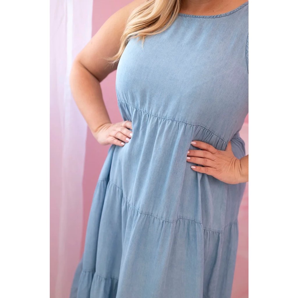 Tato rozšířená dámská maxi šaty bez rukávů jsou ideální volbou pro ženy, které si cení pohodlí a volnosti pohybu v módním provedení. Vyrobené ze 100% přírodního lyocellu, tkaniny známé svou výjimečnou měkkostí a prodyšností, jsou skvělé pro teplejší dny. Jemné horizontální švy dodávají šatům lehkost a činí je velmi ženskými. Oversize střih a maxi délka jsou poctou ženám, které preferují pohodlný, neformální styl. Skvělé jak pro každodenní výlety, procházky, tak i na dovolenou. Model určený pro ženy nosící velikosti Plus Size – XXL, XXXL a větší.