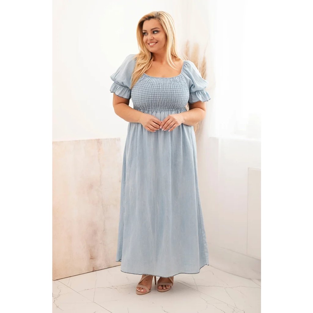 Stylové dámské šaty Plus Size z příjemného tencelu jsou ideální volbou pro ženy, které oceňují pohodlí, ženský styl a módní detaily. Délka maxi jemně zeštíhluje postavu a elastický horní díl se řasením se přizpůsobí různým tvarům a zajišťuje maximální pohodlí při nošení.