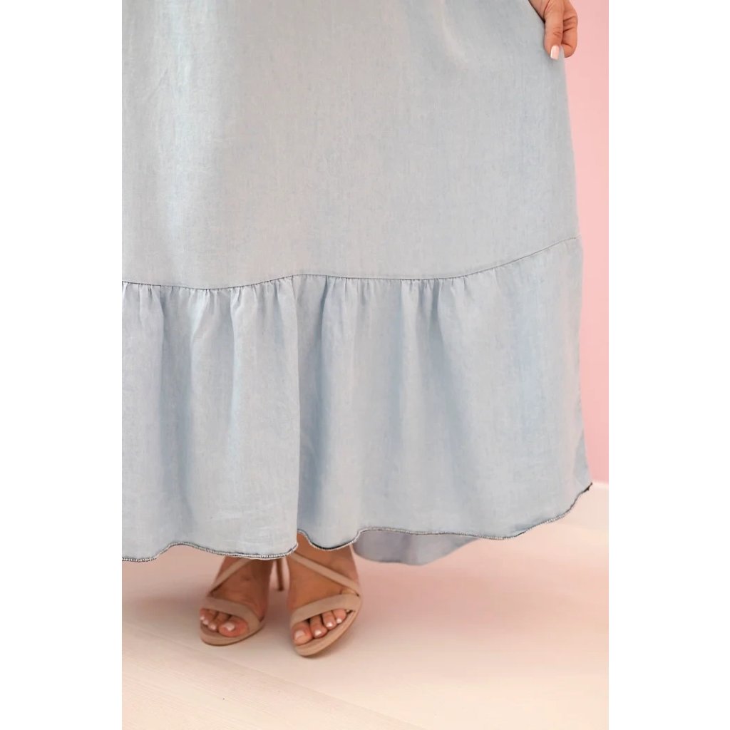Hledáte lehké, prodyšné šaty na teplé dny? Tyto dámské šaty na ramínka s volánem jsou ideální volbou na léto! Vyrobené ze 100% přírodního a prodyšného materiálu Tencel, poskytují vynikající pohodlí a prodyšnost i během horkých dnů. Volný, ležérní střih s volánem ve spodní části dodává ženský půvab a krásně sedí na postavě. Šaty jsou skvělé na každodenní nošení, dovolenou, procházky nebo venkovní setkání. Jemná ramínka krásně zvýrazní ramena a podtrhnou letní charakter outfitu.