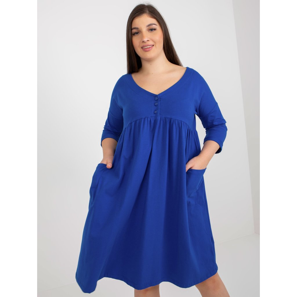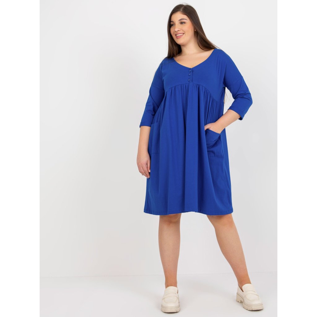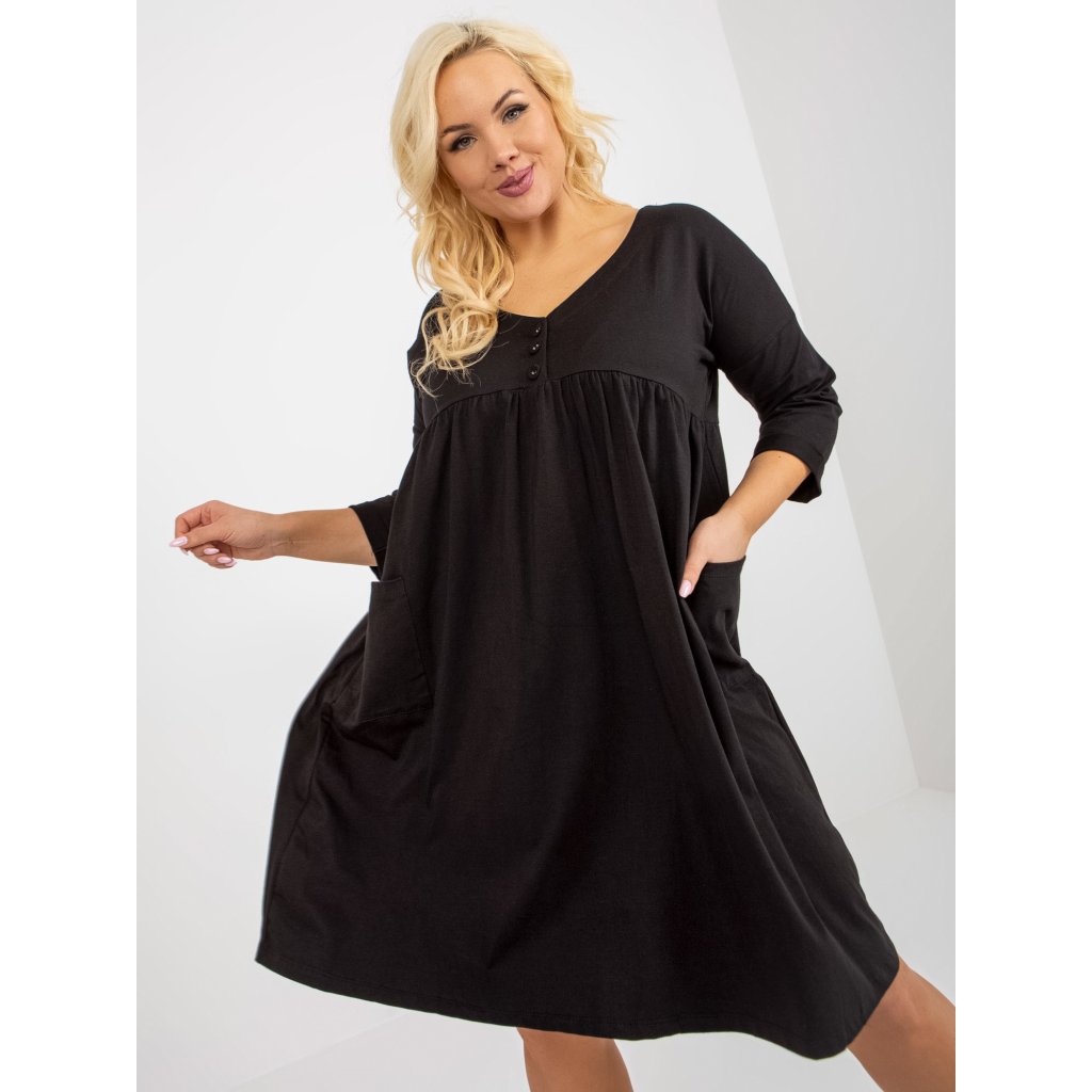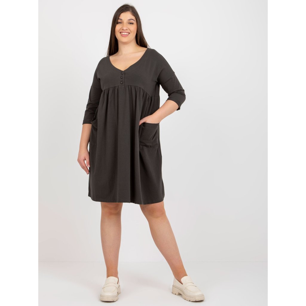 Dámské šaty Plus Size s 3/4 rukávem a kapsami.složení materiálu: 90% bavlna, 10% elastan