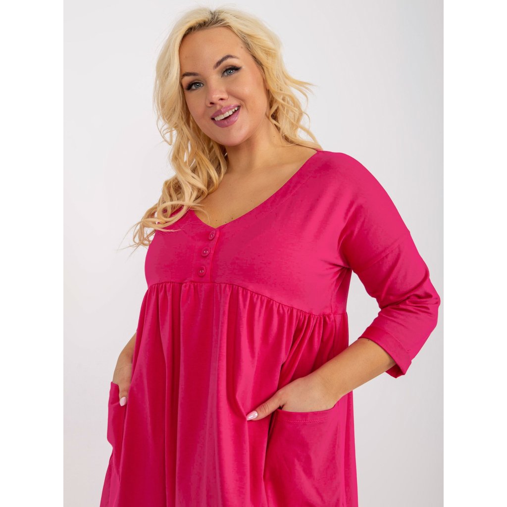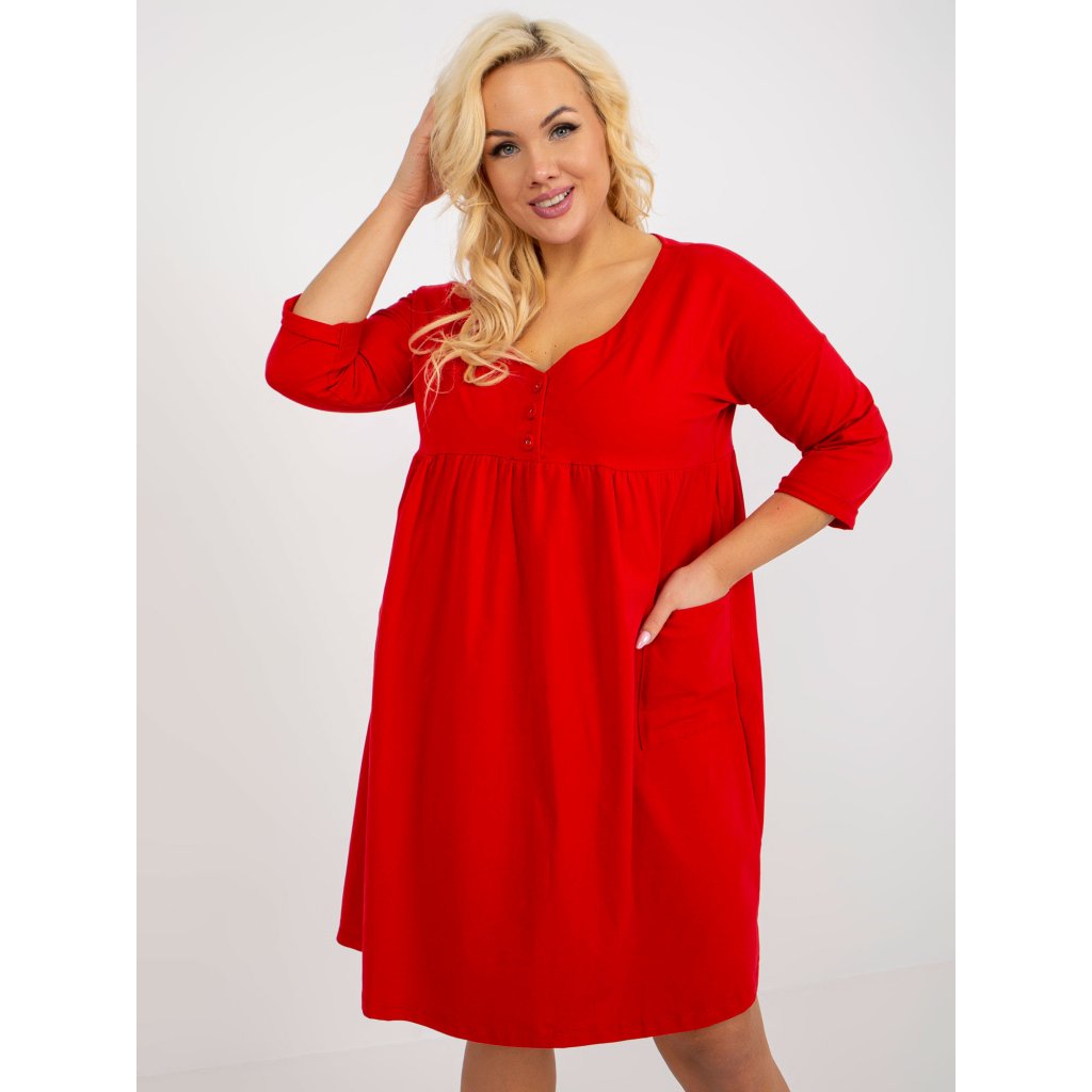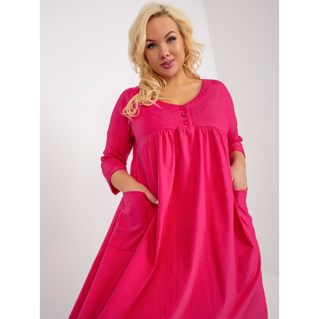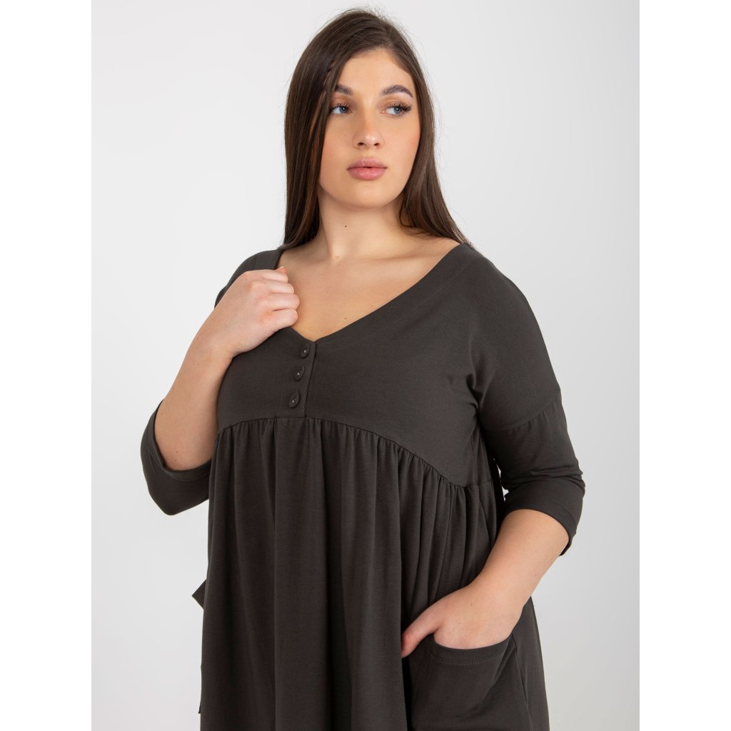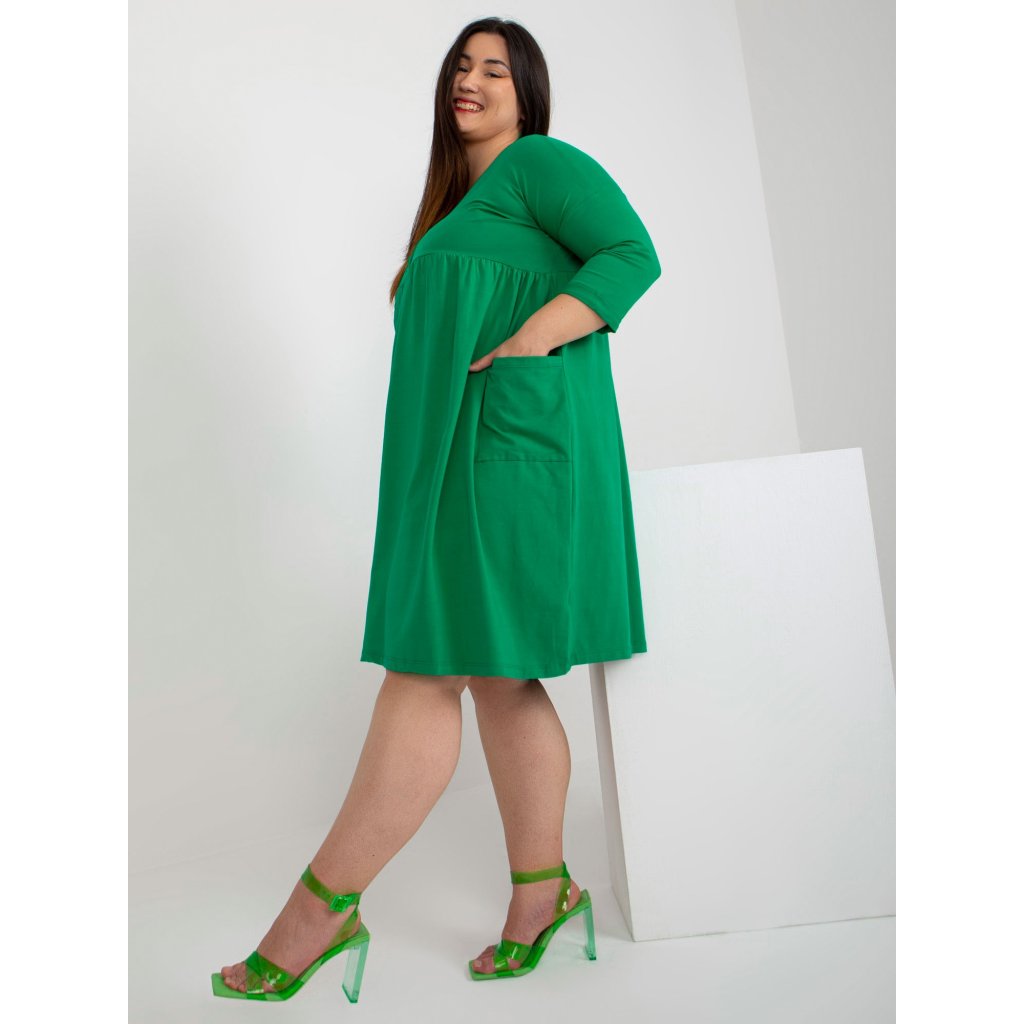 Dámské šaty Plus Size s 3/4 rukávem a kapsami.složení materiálu: 90% bavlna, 10% elastan