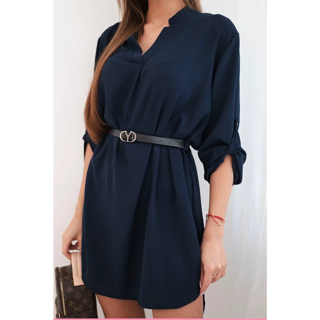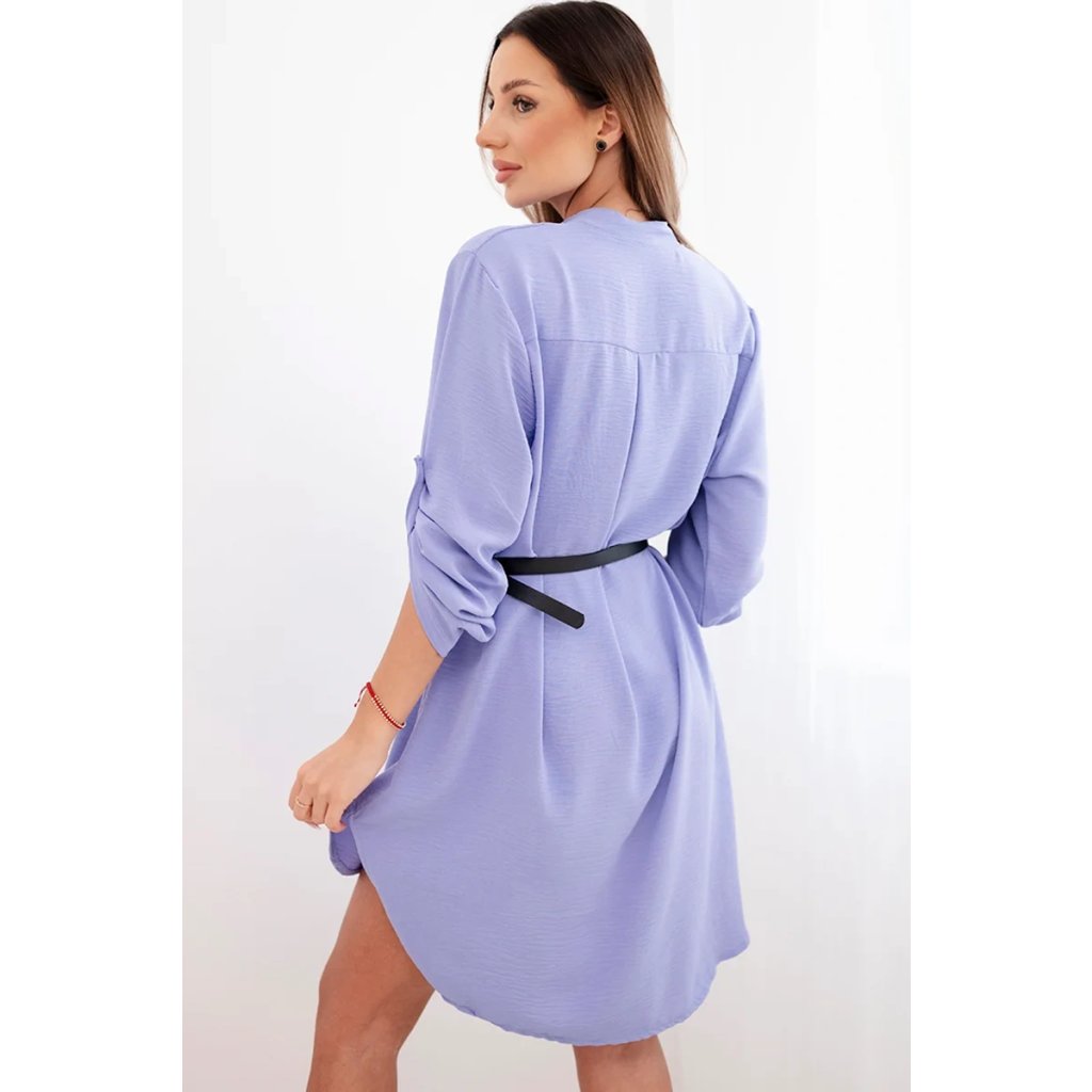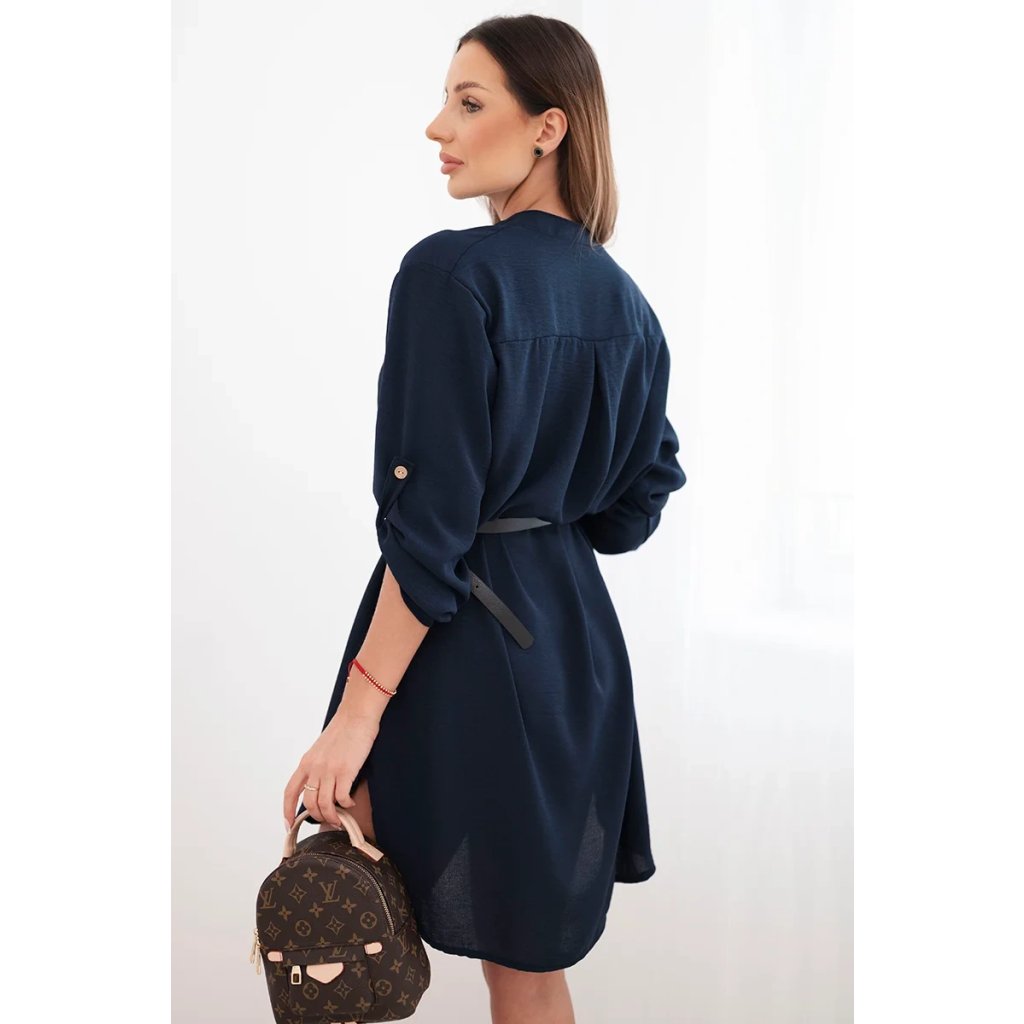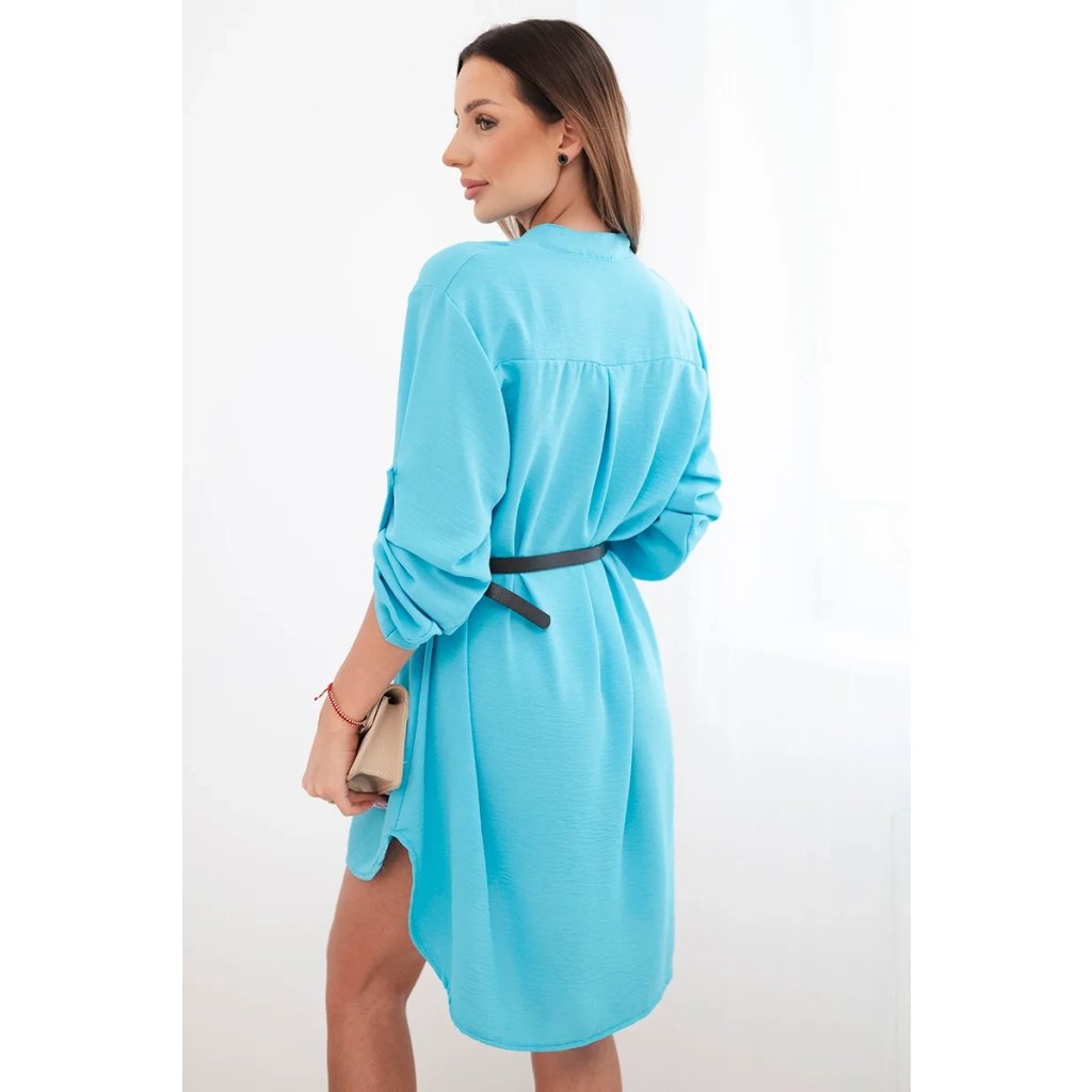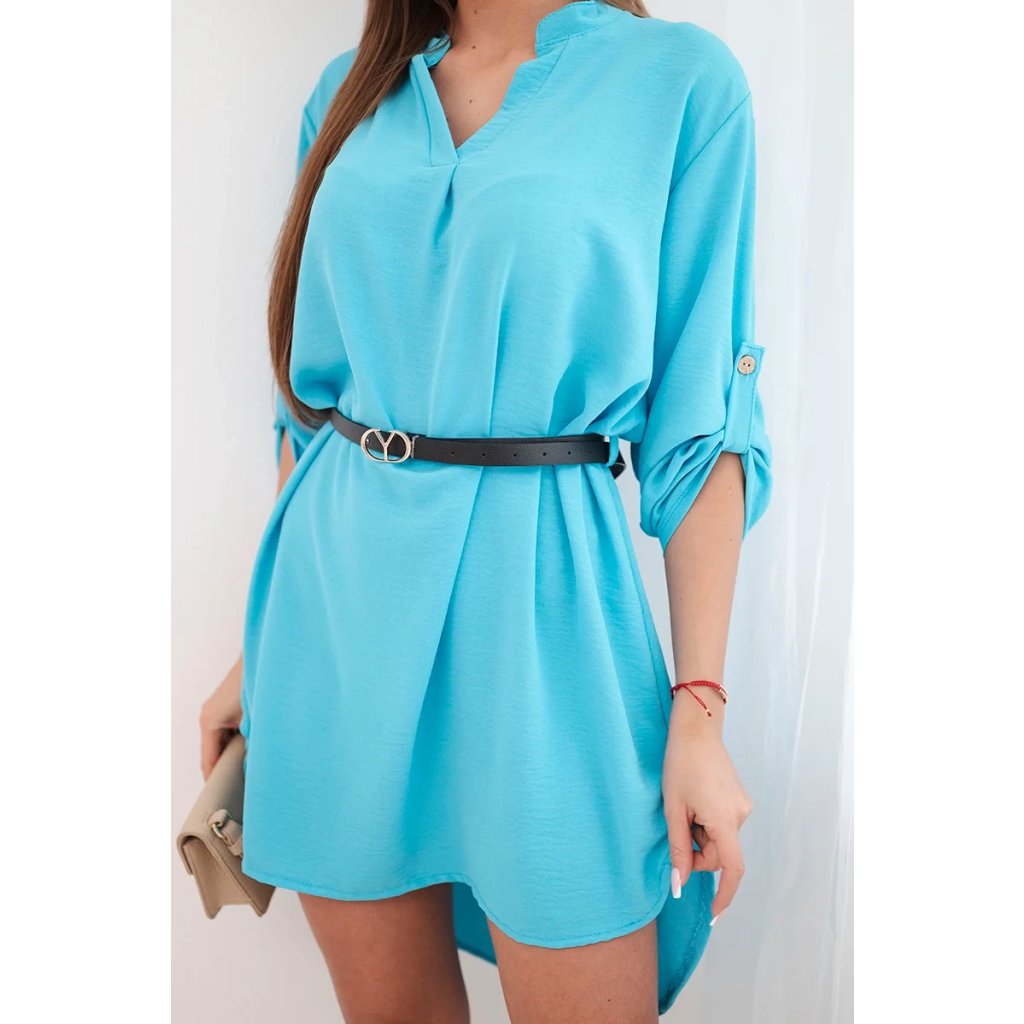 Šaty s delší zadní částí a páskem modrá