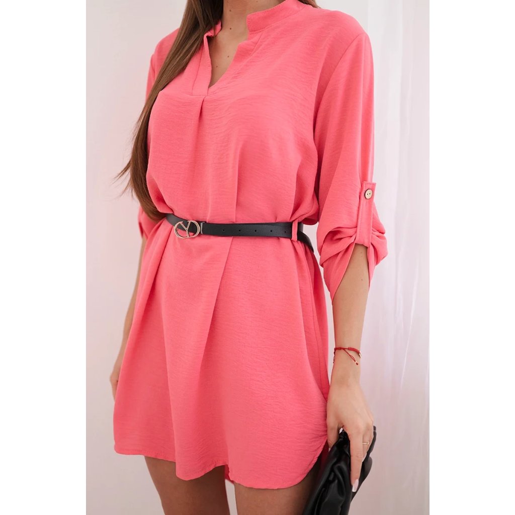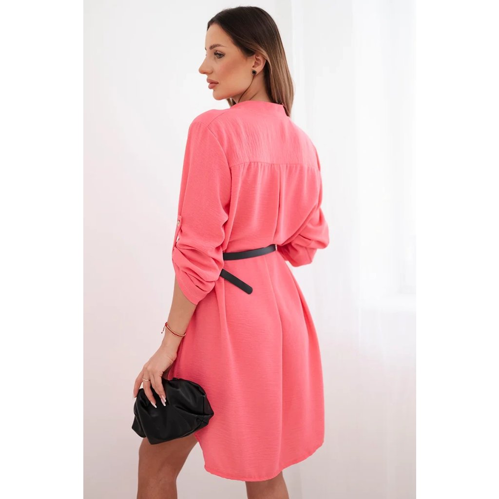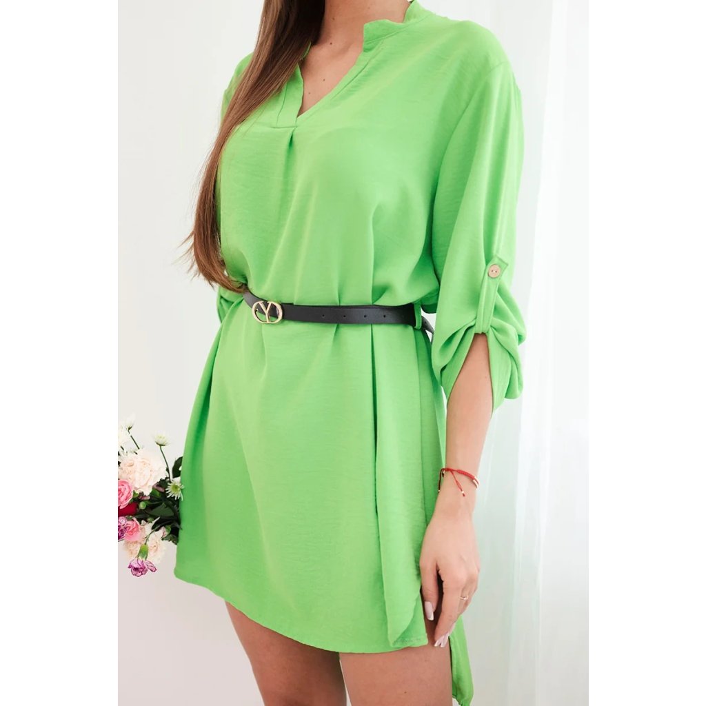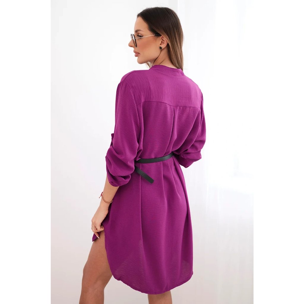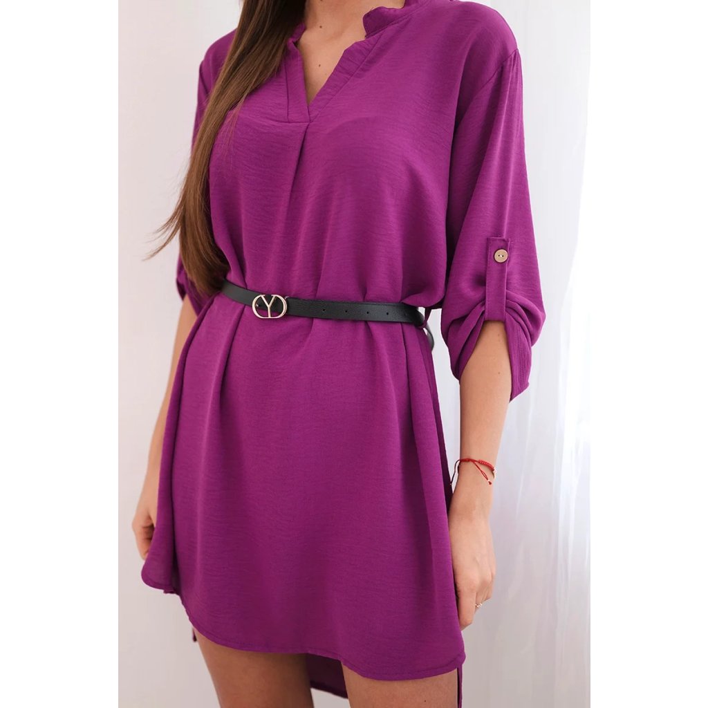 Šaty s delší zadní částí a páskem modrá