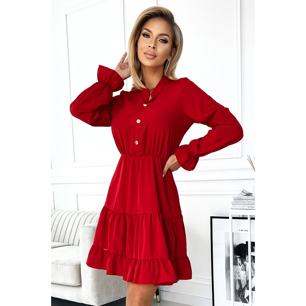 Šaty s výstřihem a zlatými knoflíky - červené 395-1