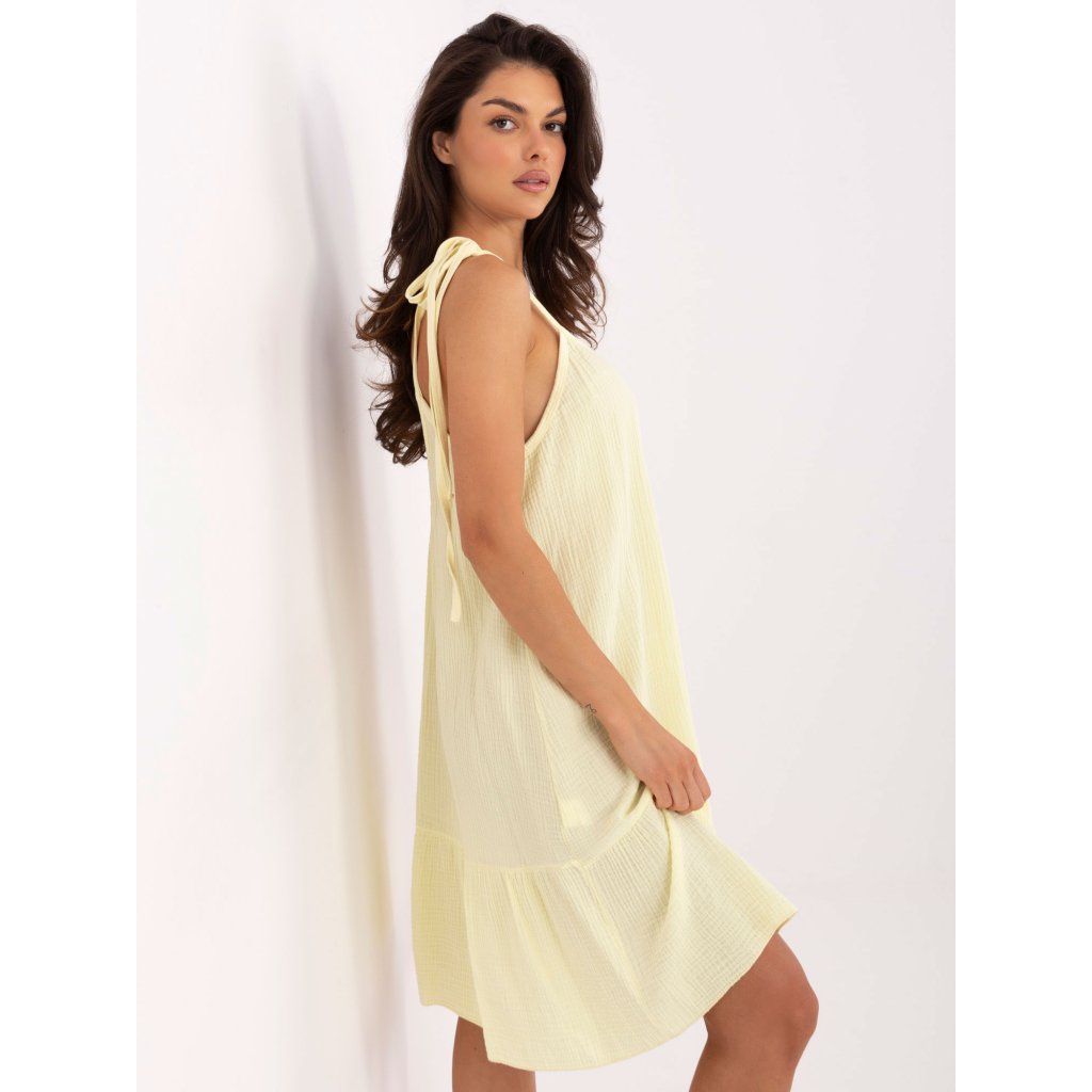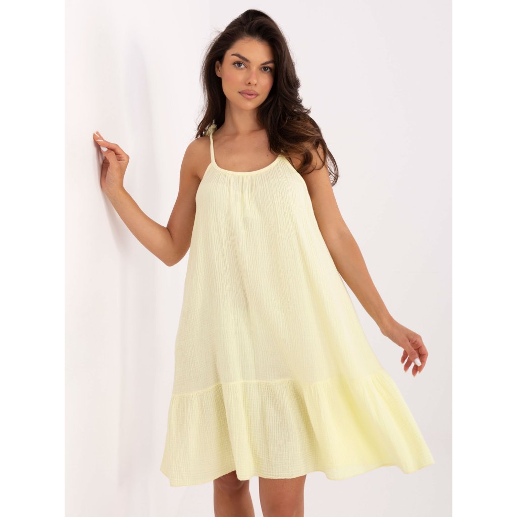 Míry šatů ve velikosti jedna: podpaží - 59 cm, pas - 63 cm, boky - 66 cm, celková délka - 81 cm (bez ramínek), délka ramínek - 98 cm.