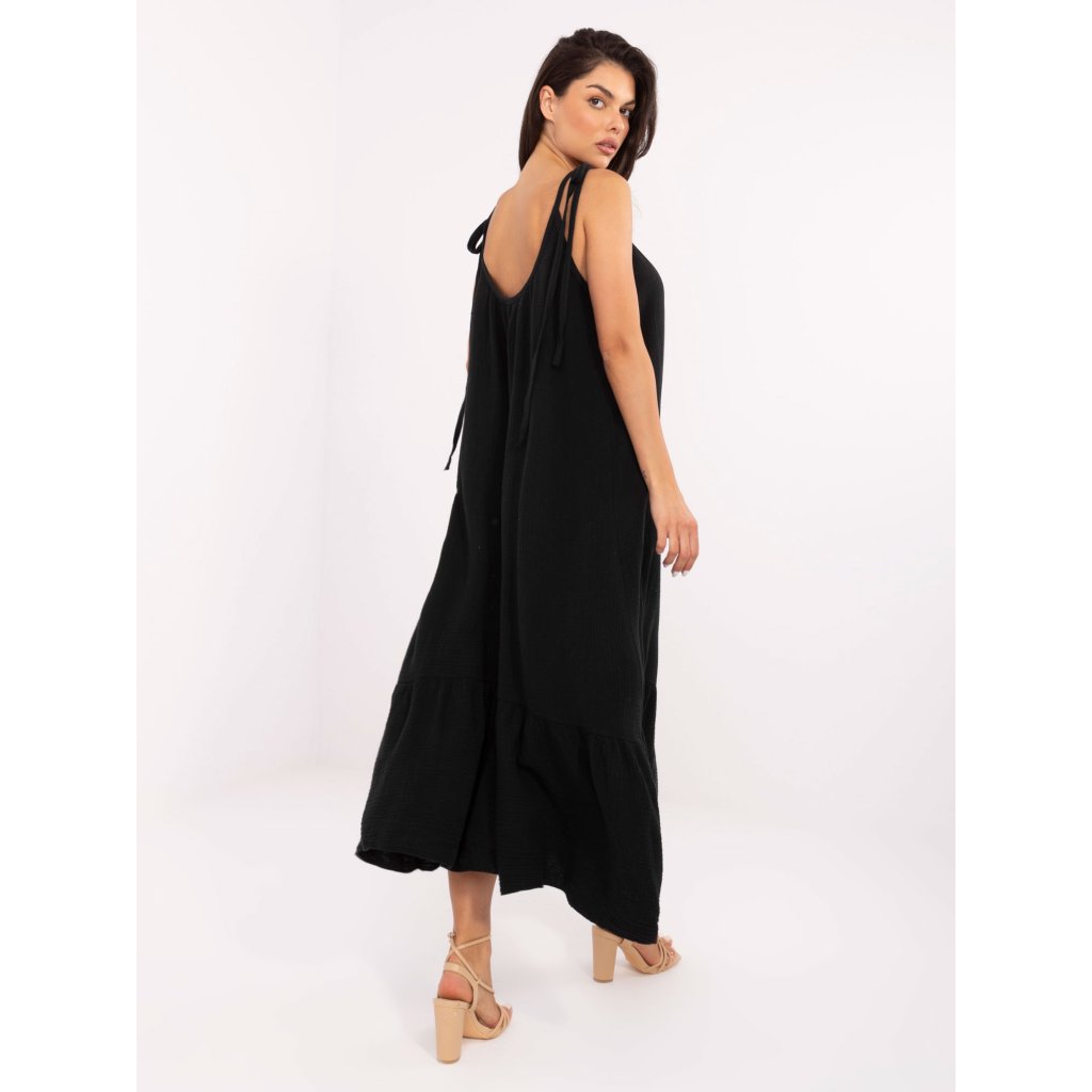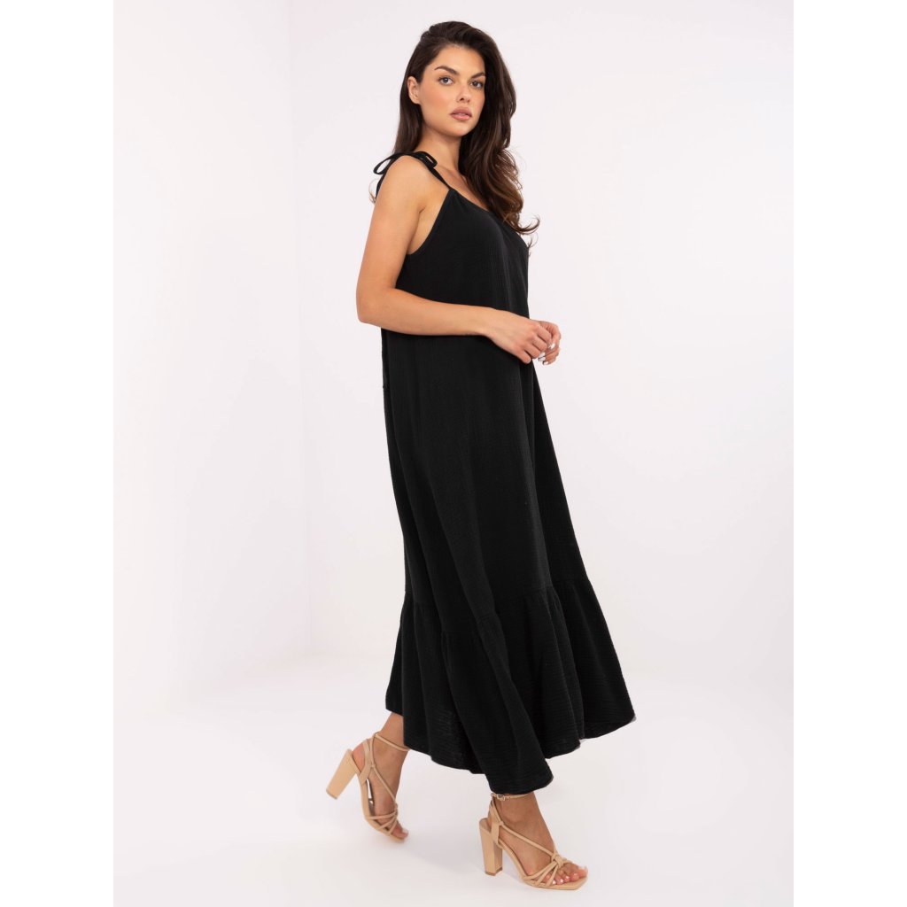 Míry šatů ve velikosti jedna: podpaží - 59 cm, pas - 63 cm, boky - 66 cm, celková délka - 119 cm (bez ramínek), délka ramínek - 82 cm.