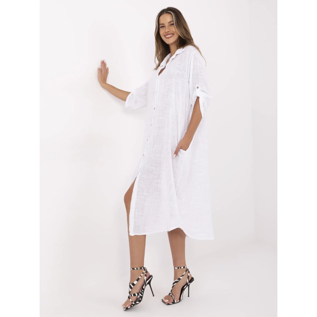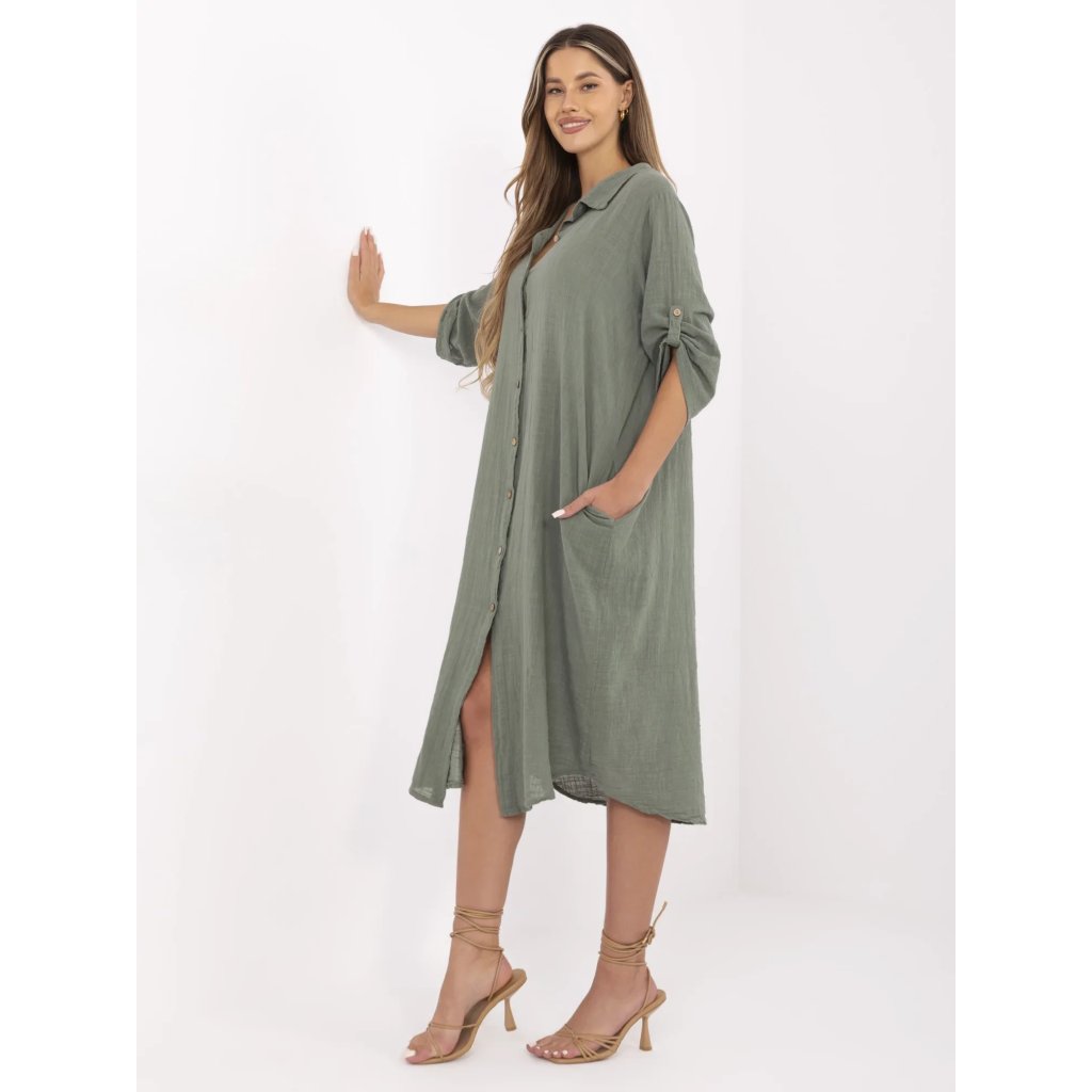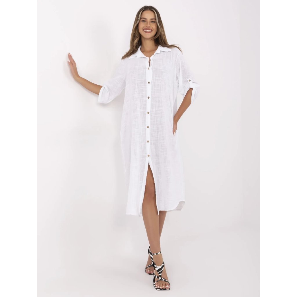 Rozměry šatů ve velikosti one size měřeno v plochém stavu: šířka v podpaží - 62 cm, šířka v pase - 62 cm, délka rukávu - 41 cm, šířka v bocích - 67 cm, celková délka - 113 cm.