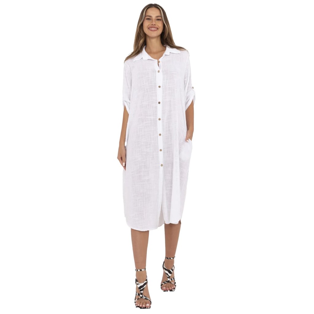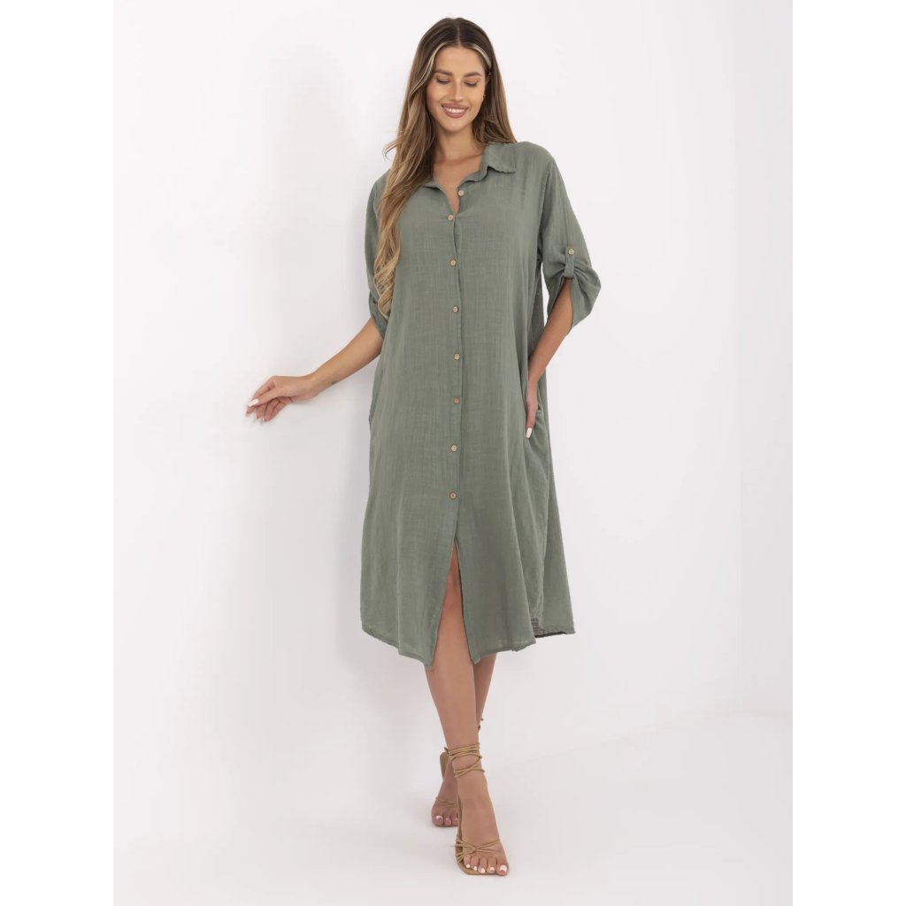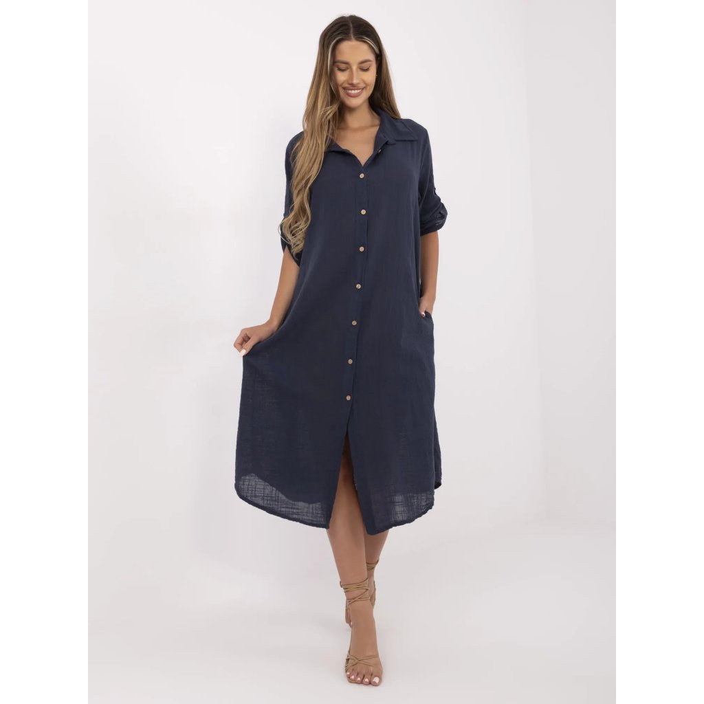 Rozměry šatů ve velikosti one size měřeno v plochém stavu: šířka v podpaží - 62 cm, šířka v pase - 62 cm, délka rukávu - 41 cm, šířka v bocích - 67 cm, celková délka - 113 cm.