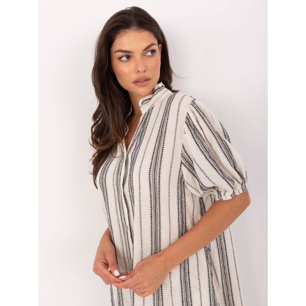 Modelka má na sobě velikost jedna. Míry modelky: výška 173 cm, obvod hrudníku 89 cm, pas 65 cm, boky 91 cm.