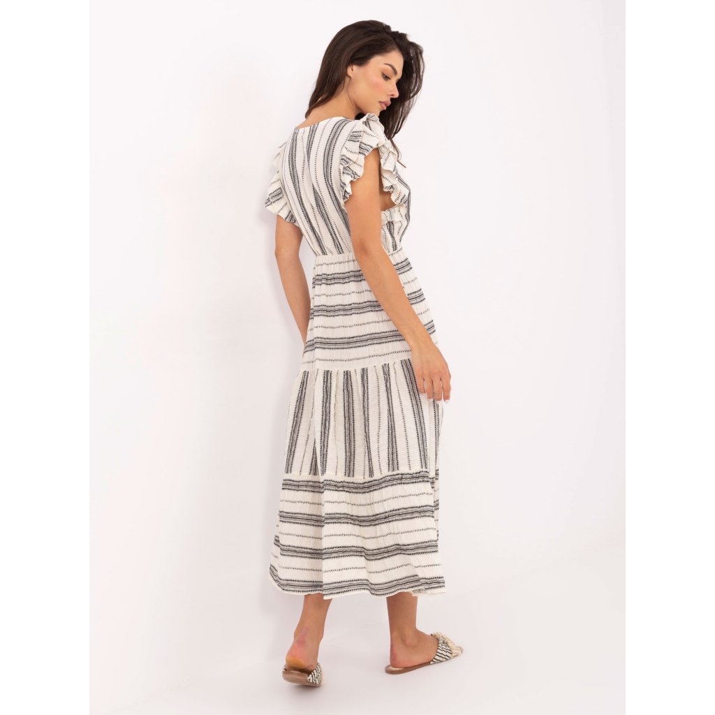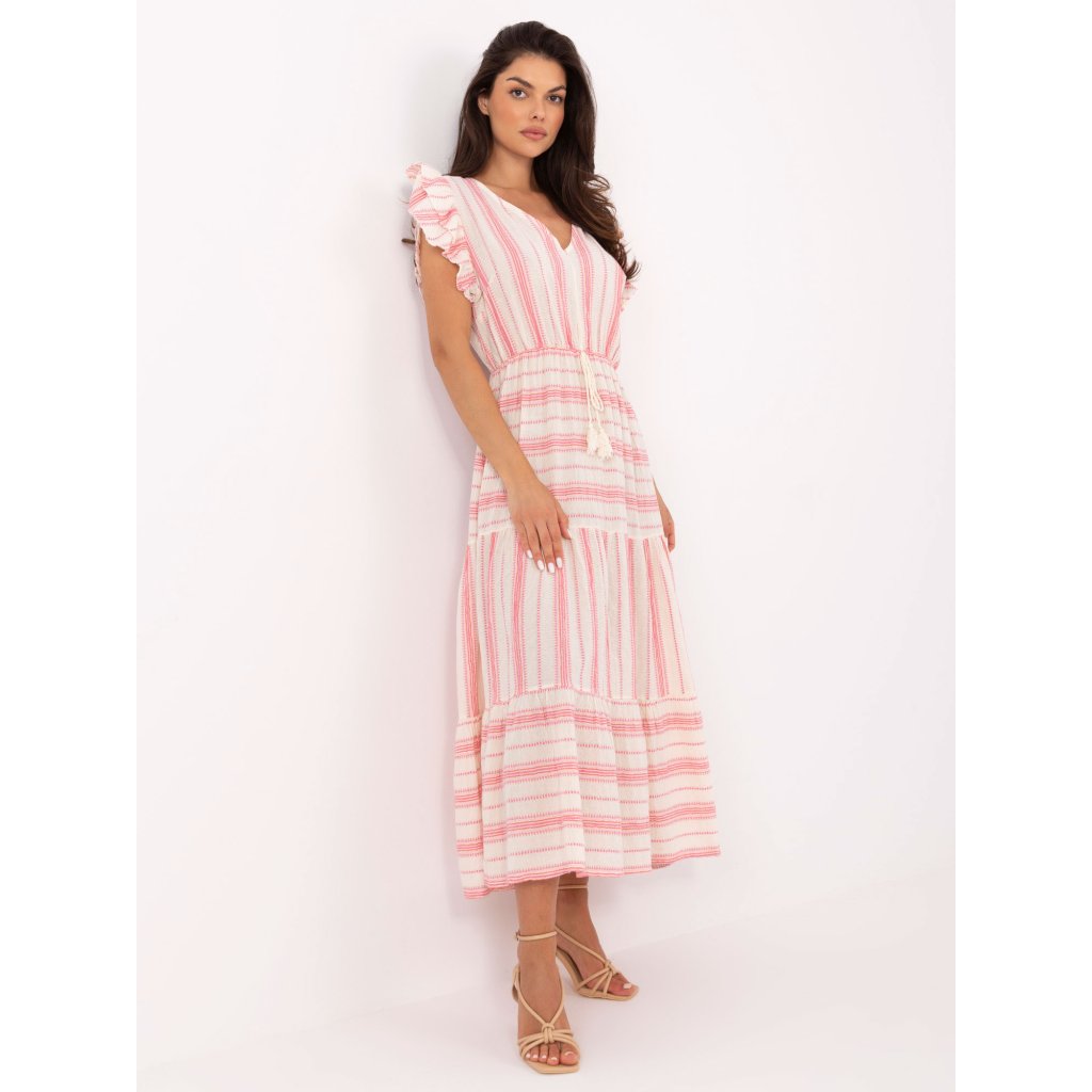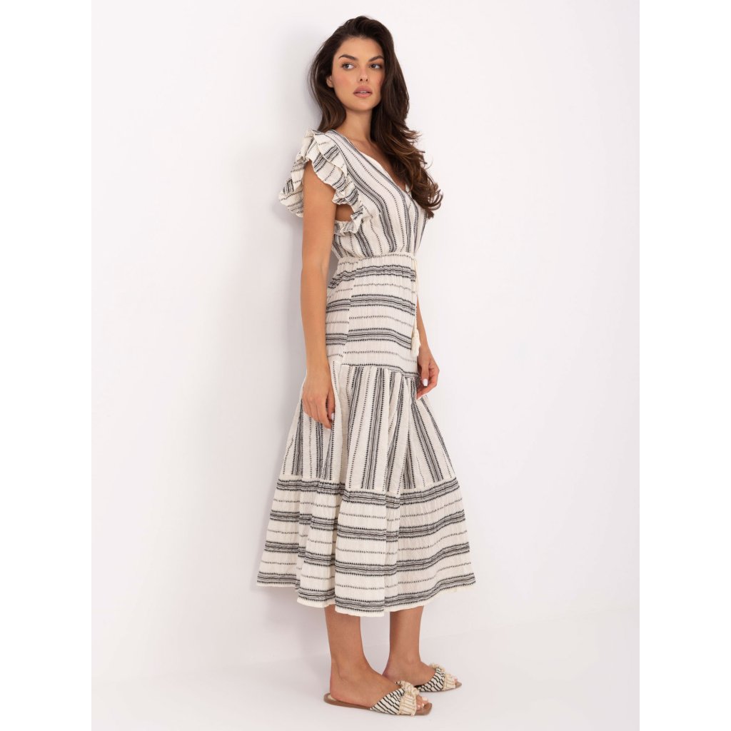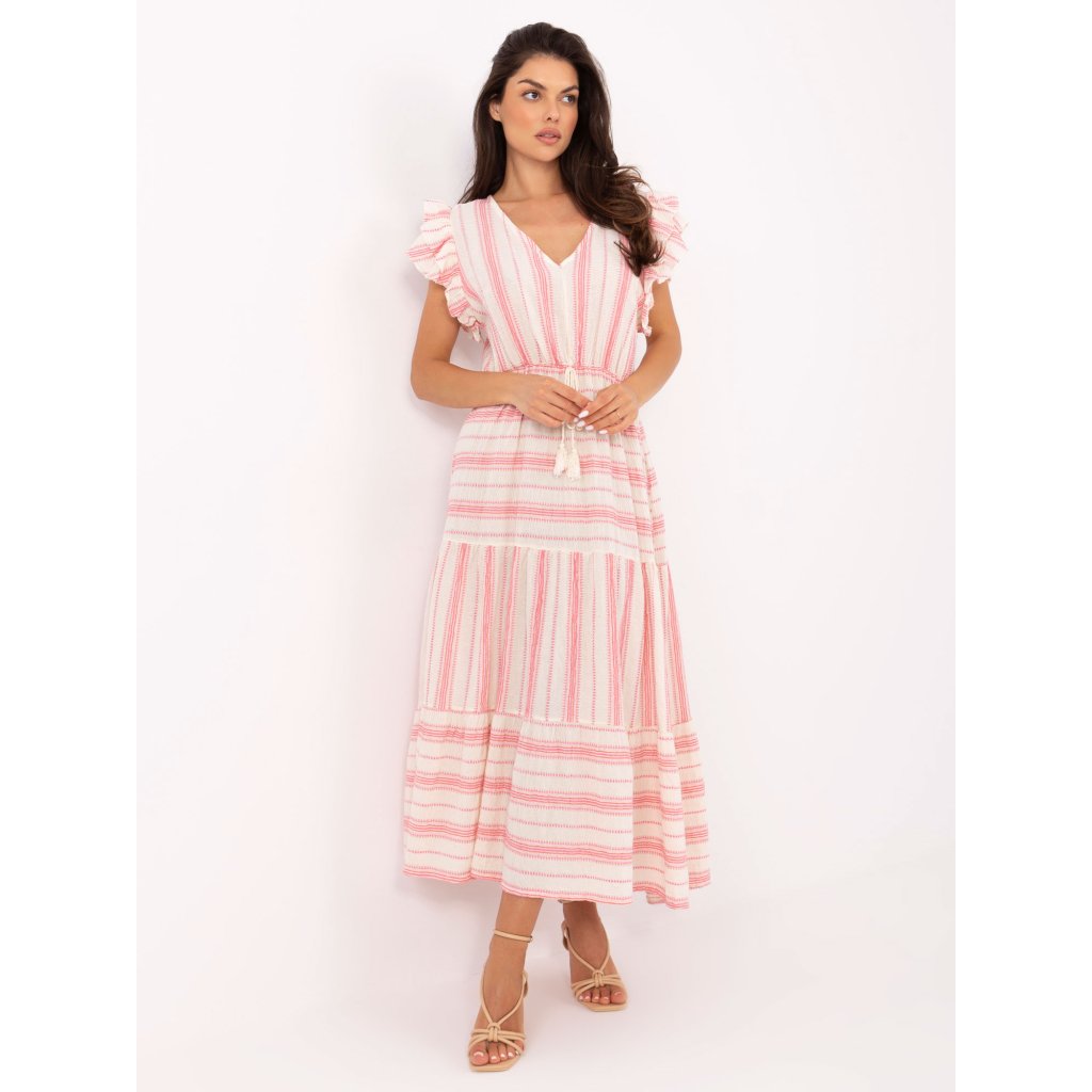 Míry modelky: výška 173 cm, hrudník 89 cm, pas 65 cm, boky 91 cm.