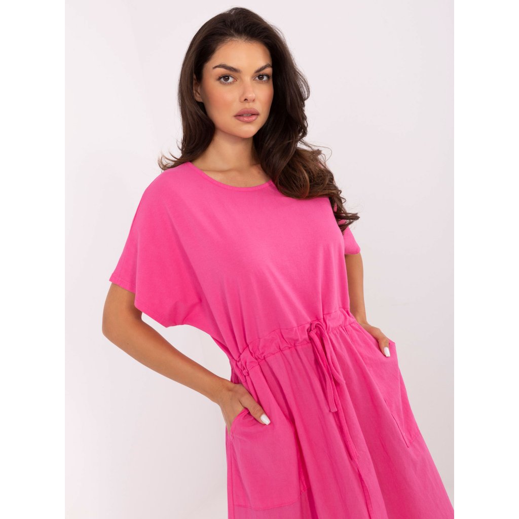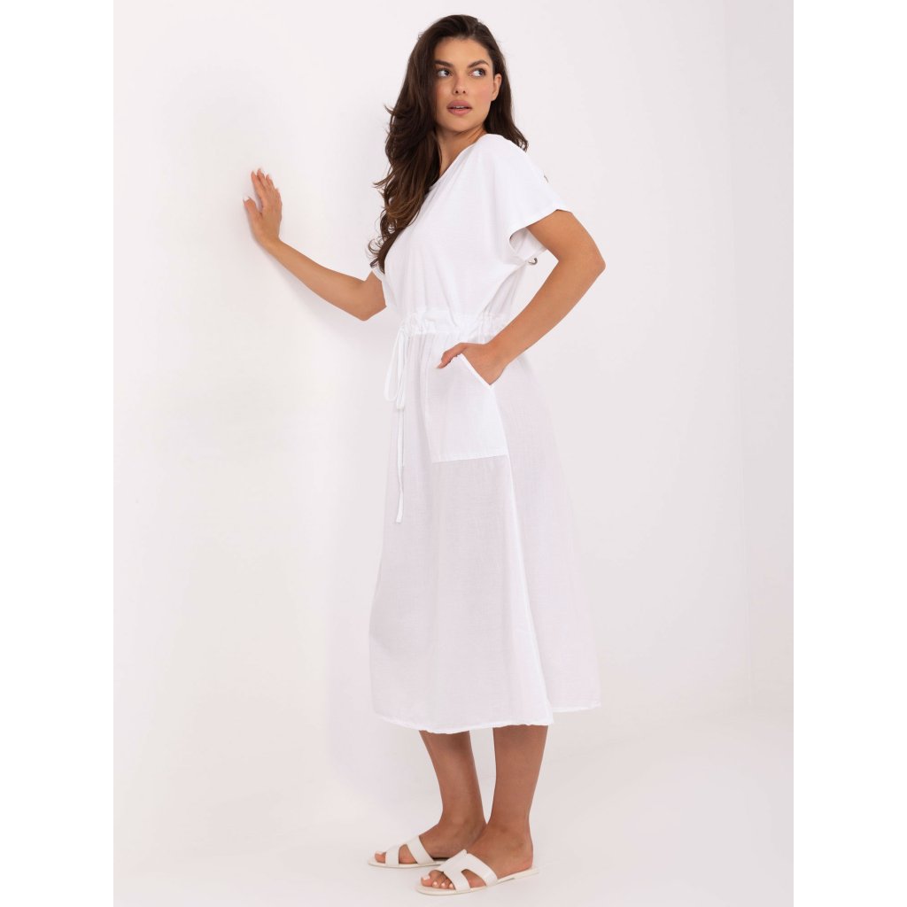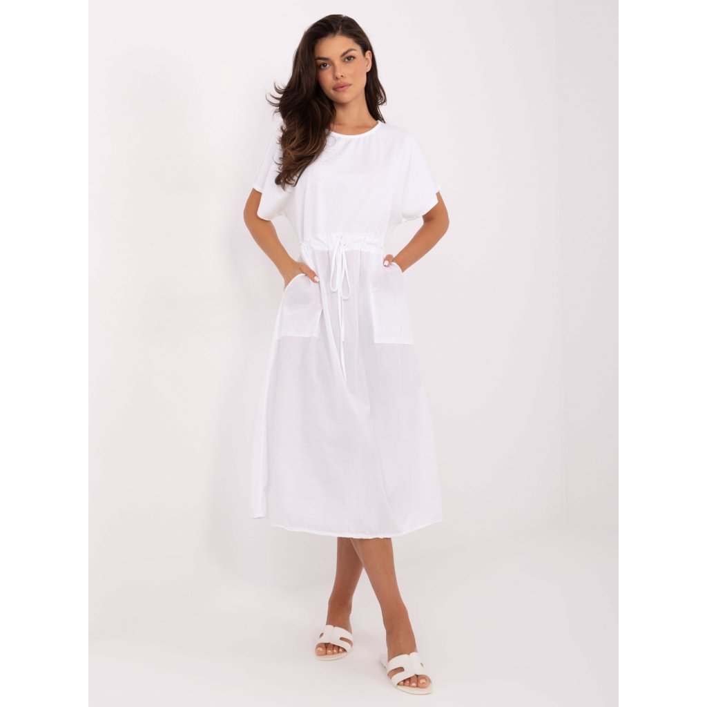 Míry šatů ve velikosti jedna: podpaží - 58 cm, pas - 50 cm, boky - 62 cm, délka rukávu - 28 cm, celková délka - 118 cm.