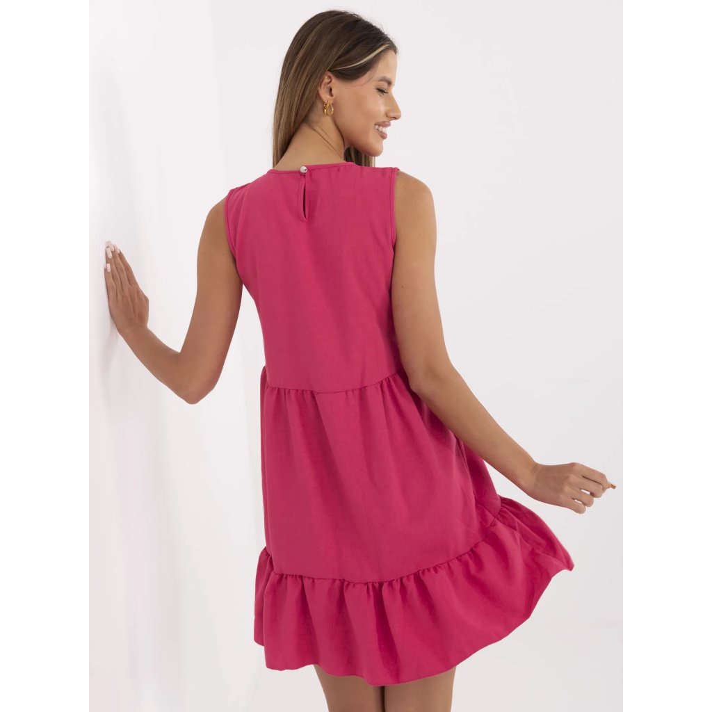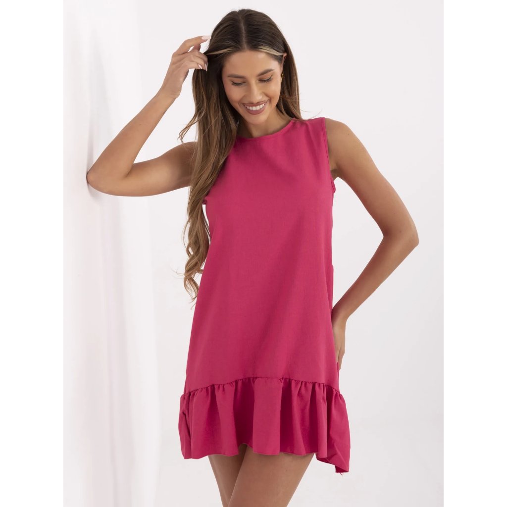 RUE PARIS Růžové dámské šaty s volánky.