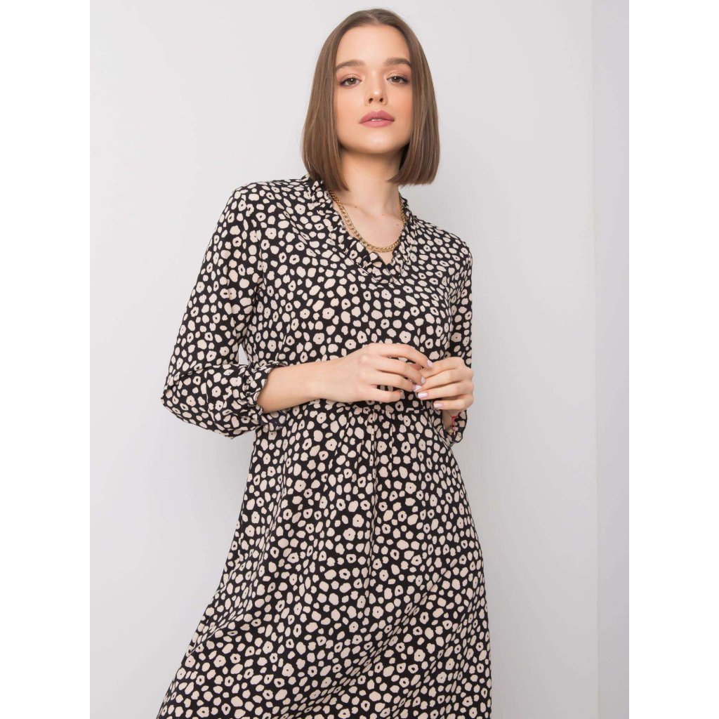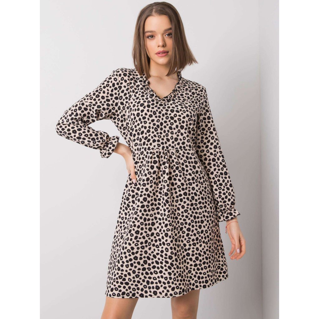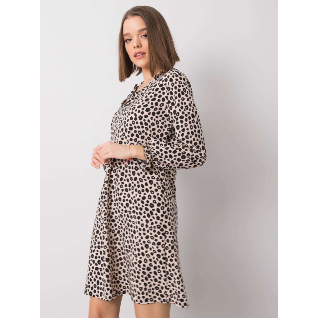 RUE PARIS Světle béžové vzorované šaty.