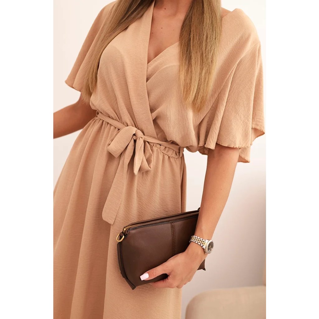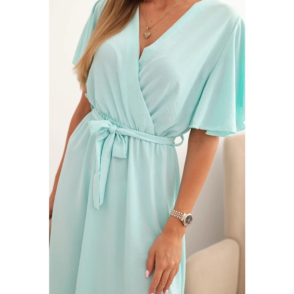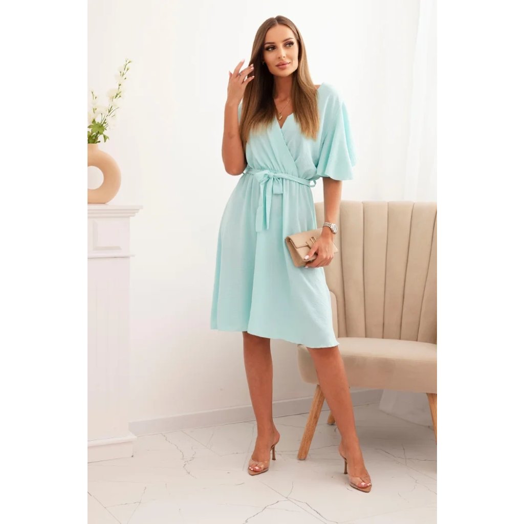 Šaty s překříženým výstřihem jsou elegantní a ženskou volbou, která se bude hodit pro mnoho příležitostí. Ohrnutý výstřih dodává šatům jedinečné kouzlo. Tento styl šatů dokonale zvýrazní dekolt a dodá ženskost a zároveň je velmi jemný a stylový. Šaty jsou vyrobeny z materiálu, který je příjemný na dotek a dobře sedí na postavě. Je perfektní volbou pro ženy, které oceňují eleganci, ženskost a jemný styl. Tyto šaty se skvěle hodí na romantická rande, ale i na formálnější příležitosti. Velikost je univerzální a bude vhodná pro ženy, které nosí velikost S, M nebo L.
