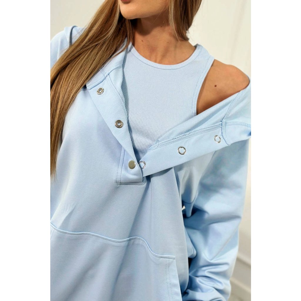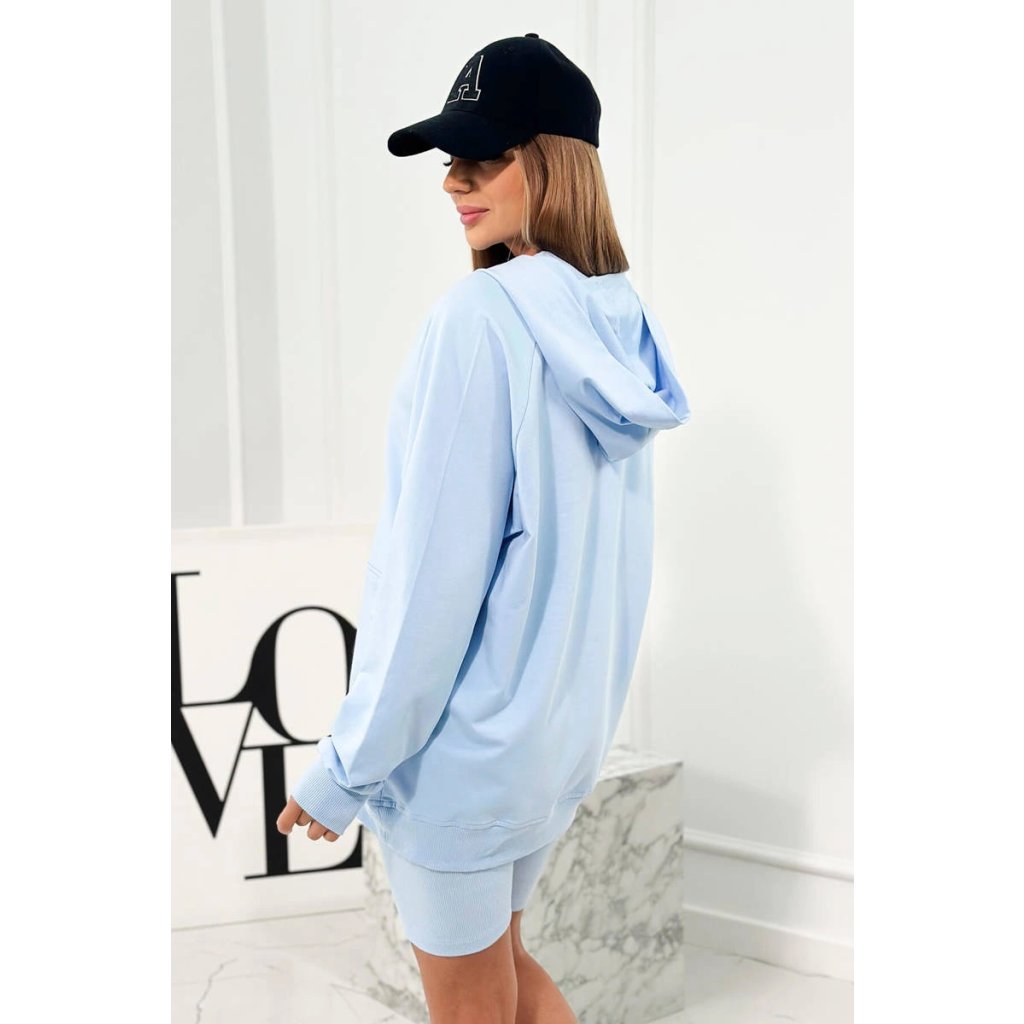 Komplet 3-częściowy składający się z bluzy, prążkowanych krótkich legginsów i topu to idealny strój dla kobiet ceniących sobie modny i wygodny styl. Bluza z długim rękawem i kapturem zapewni komfort i ciepło w chłodne dni, a jednocześnie dodaje charakteru całej stylizacji. Top podkreśli kobiecą sylwetkę, a prążkowane legginsy mogą dodać subtelnej elegancji i wyróżnić się w tłumie. Taki komplet świetnie sprawdzi się zarówno na co dzień, jak i na bardziej formalne okazje, a dzięki różnym wariantom kolorystycznym, każda kobieta może dopasować go do swojego gustu i stylu. Rozmiar jest uniwersalny i będzie odpowiedni dla Pań w rozmiarze S, M.